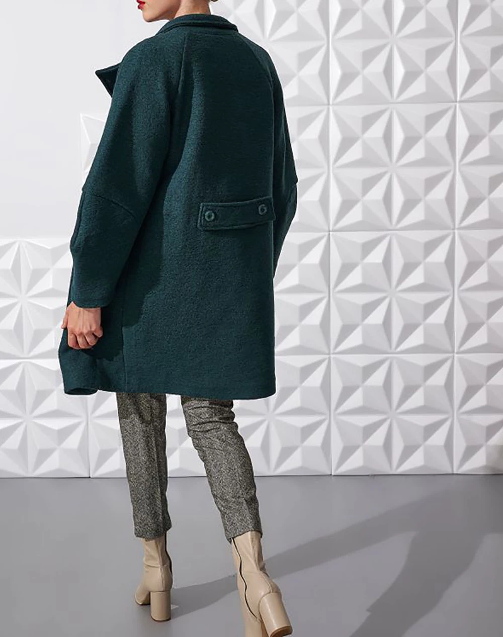Ημίπαλτο μονόχρωμο σε κανονική εφαρμογή, με ψηλή λαιμόκοψη που κλείνει με κουμπιά και πλαϊνές τσέπες. (Σύνθεση: 70% Μαλλί, 30% Διάφορες ίνες)