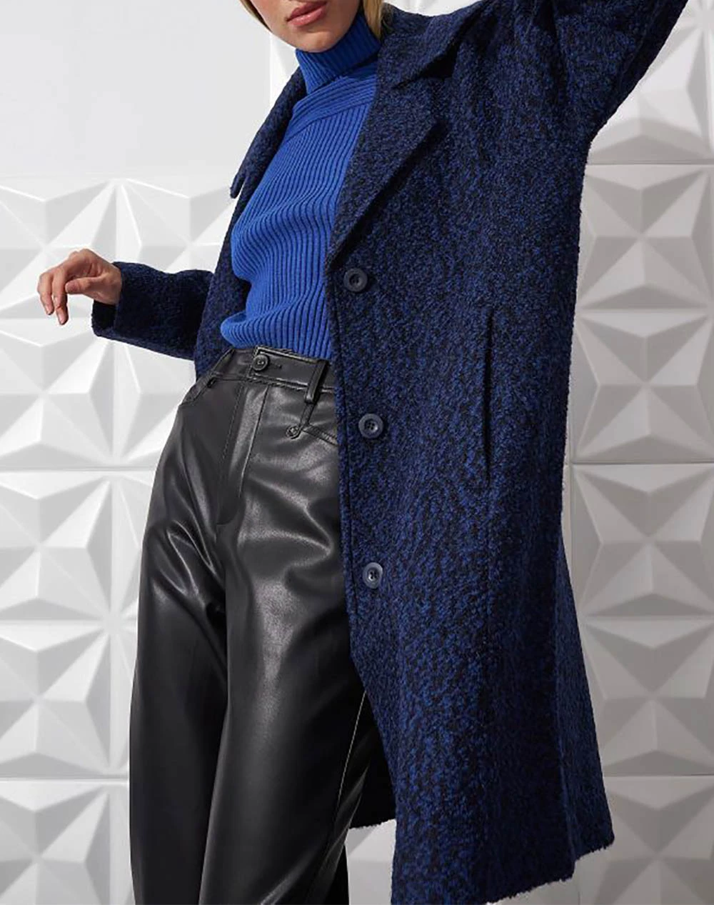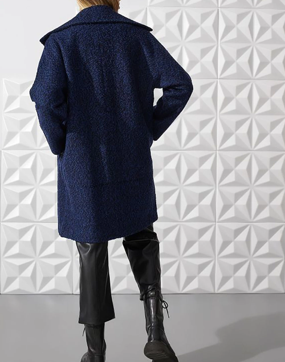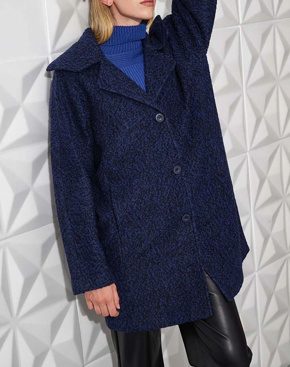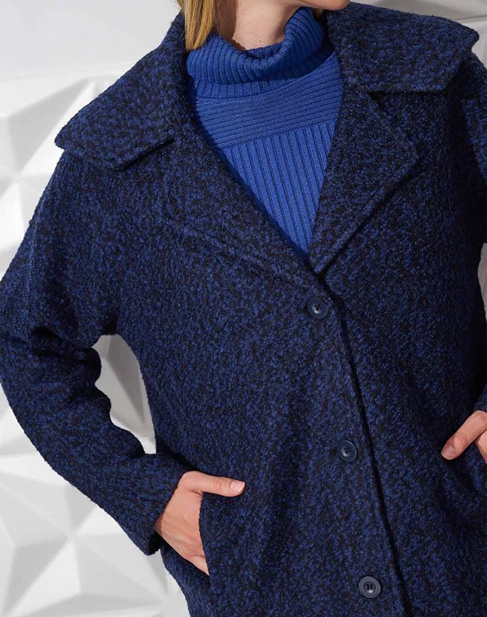 Ημίπαλτο μονόχρωμο, με μεγάλο πέτο, πλαϊνές τσέπες και κλείνει με κουμπιά μπροστά. (Σύνθεση: 30% Βαμβάκι, 70% Πολυεστέρας)