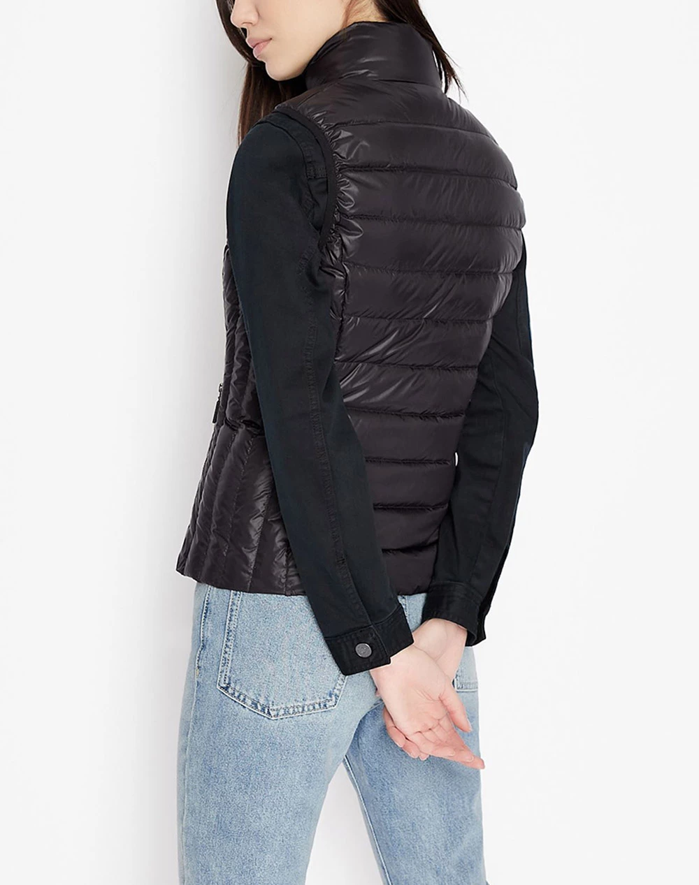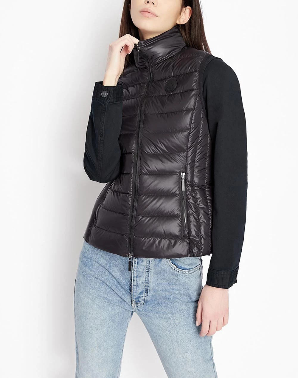 Μπουφάν αμάνικο μονόχρωμο τύπου Puffer, με καπιτονέ σχέδιο σε στενή εφαρμογή. Είναι ελαφρύ και διαθέτει τσέπες και κλείνει με φερμουάρ. (Σύνθεση: Συνθετικό υλικό)