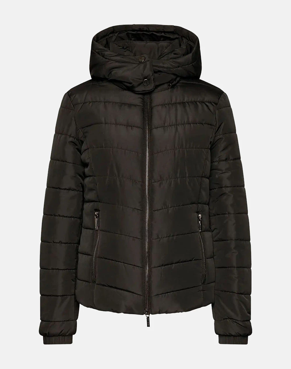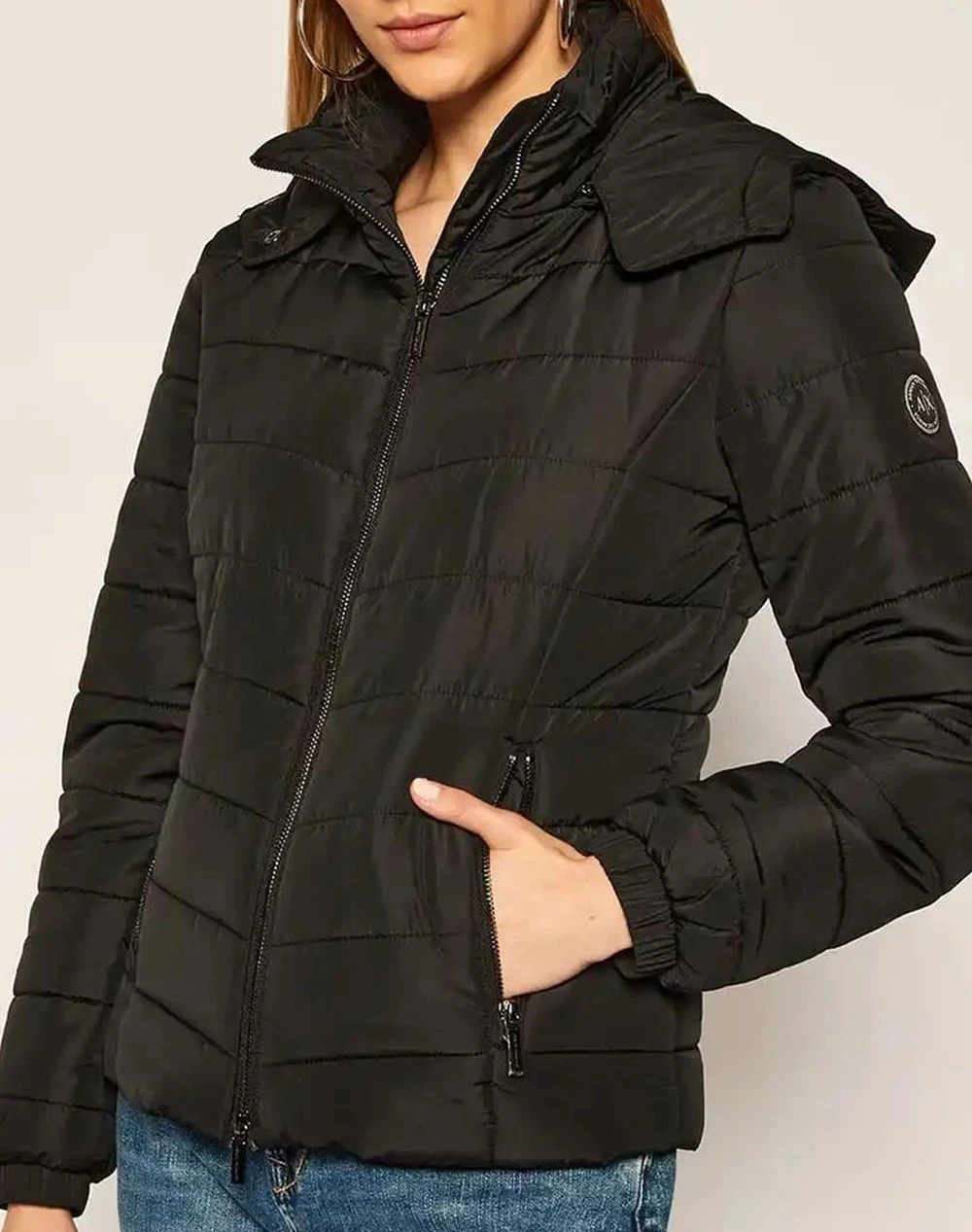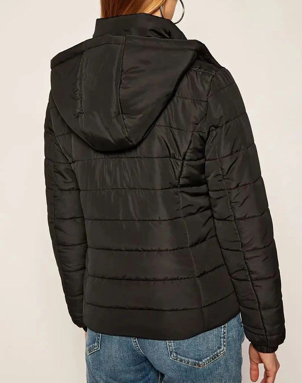 Γυναικείο μπουφάν σε κανονική γραμμή, με κουκούλα, τσέπες στο πλάι και κλείσιμο με φερμουάρ. ( Σύνθεση: 100% Πολυεστέρας )