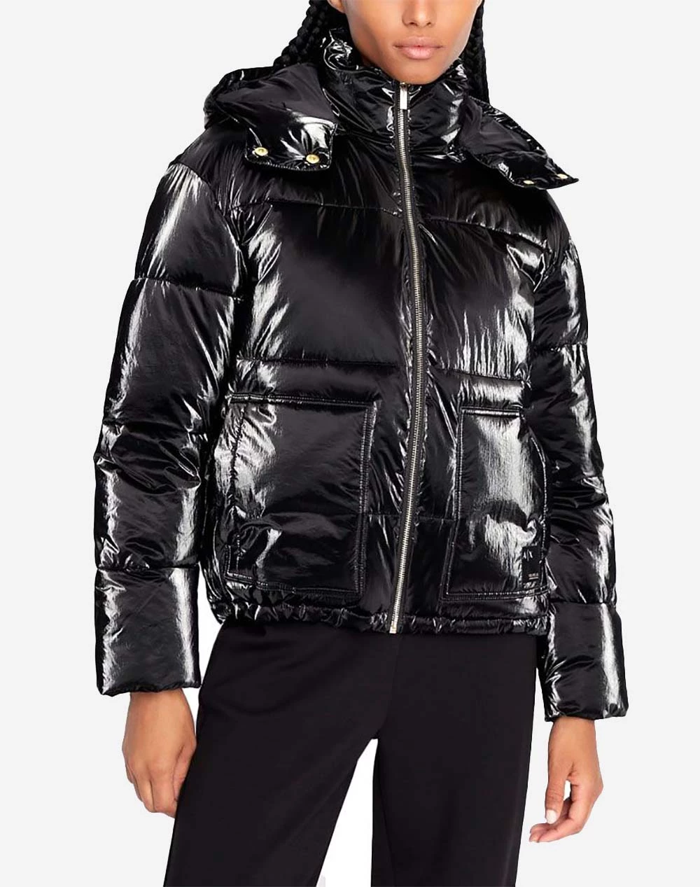 Γυναικείο μπουφάν σε κανονική γραμμή, με κουκούλα, τσέπες στο πλάι και κλείσιμο με φερμουάρ. ( Σύνθεση: 100% Πολυαμίδι )
