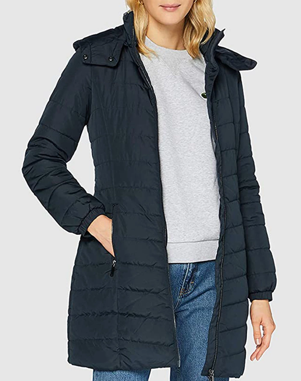 Γυναικείο μπουφάν παρκά σεκανονική γραμμή, με κουκούλα ,τσέπες στο πλάι και κλείσιμο με φερμουάρ. ( Σύνθεση: 100% Πολυεστέρας )