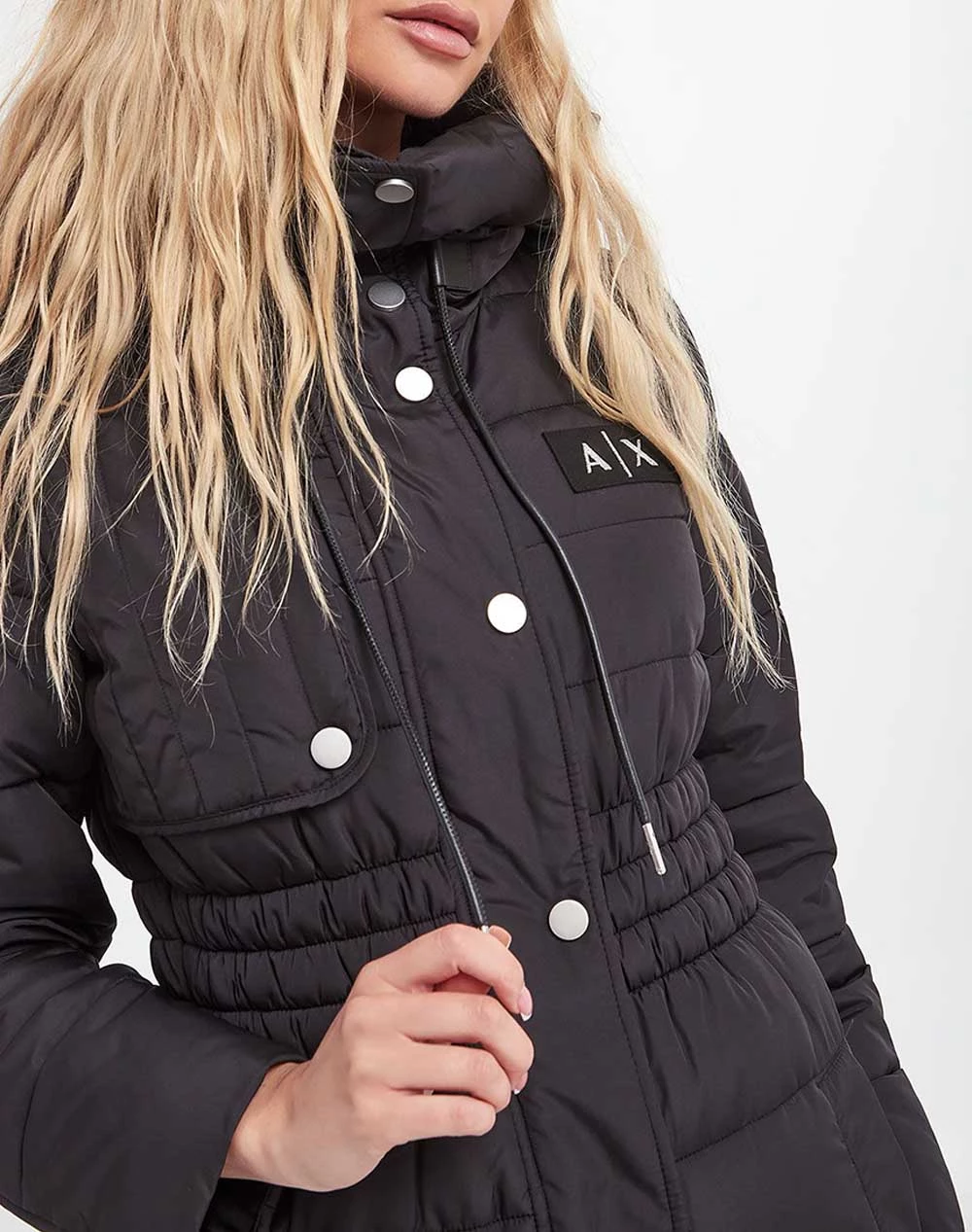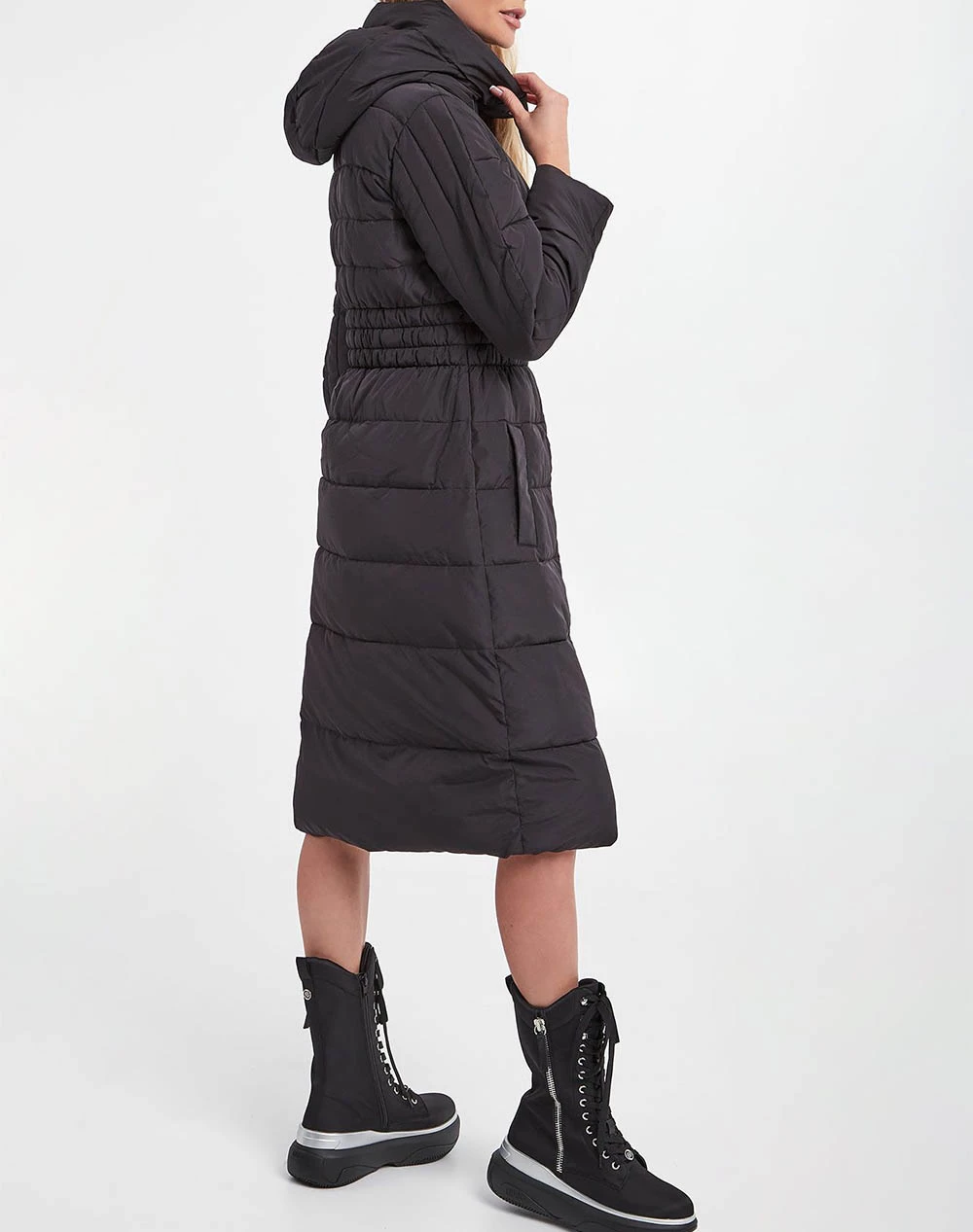Γυναικείο μακρύ μπουφάν σε κανονική γραμμή, με ρυθμιζόμενη κουκούλα, τσέπες στο πλάι και κλείσιμο με κουμπιά. ( Σύνθεση: 100% Πολυεστέρας )