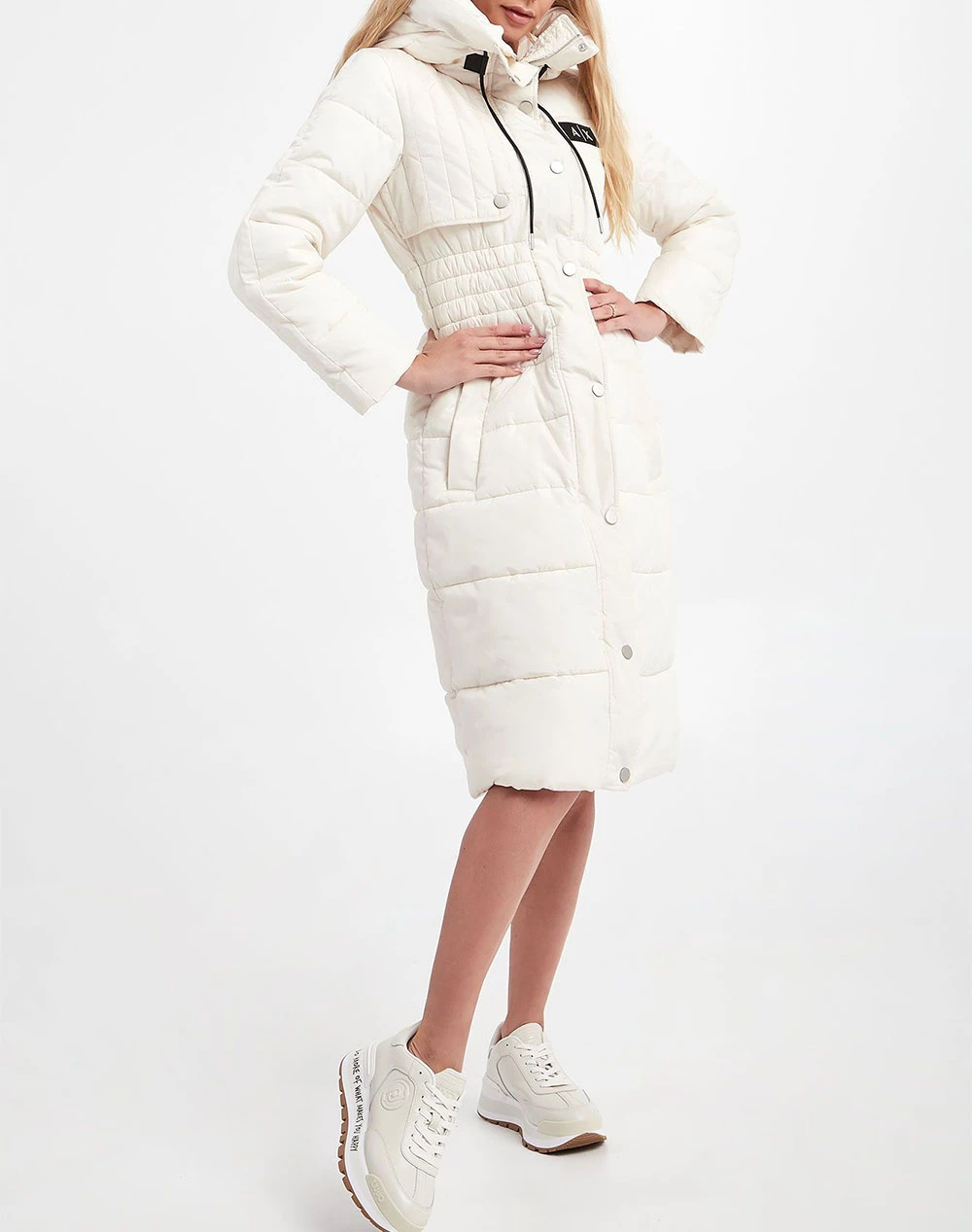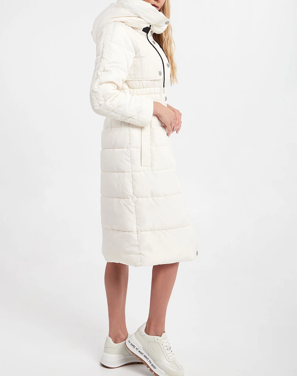 Γυναικείο μακρύ μπουφάν σε κανονική γραμμή, με ρυθμιζόμενη κουκούλα, τσέπες στο πλάι και κλείσιμο με κουμπιά. ( Σύνθεση: 100% Πολυεστέρας )