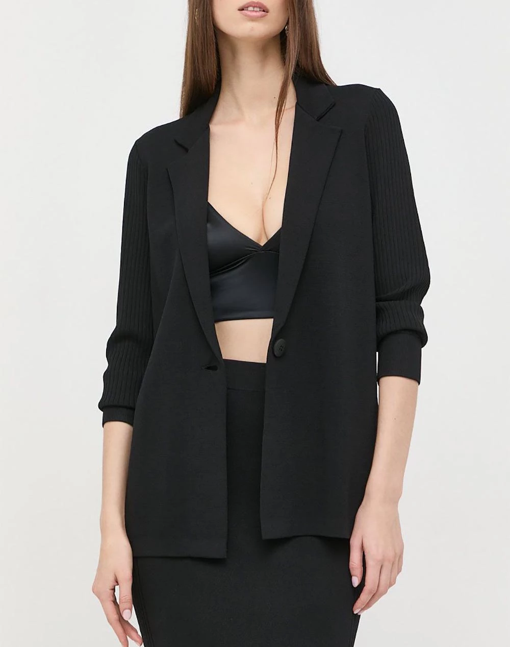 Γυναικεία ζακέτα σε κανονική γραμμή με 3/4 μανίκι, και κλείσιμο με κουμπί. ( Σύνθεση: 63% Βισκόζη, 37% Πολυαμίδιο )