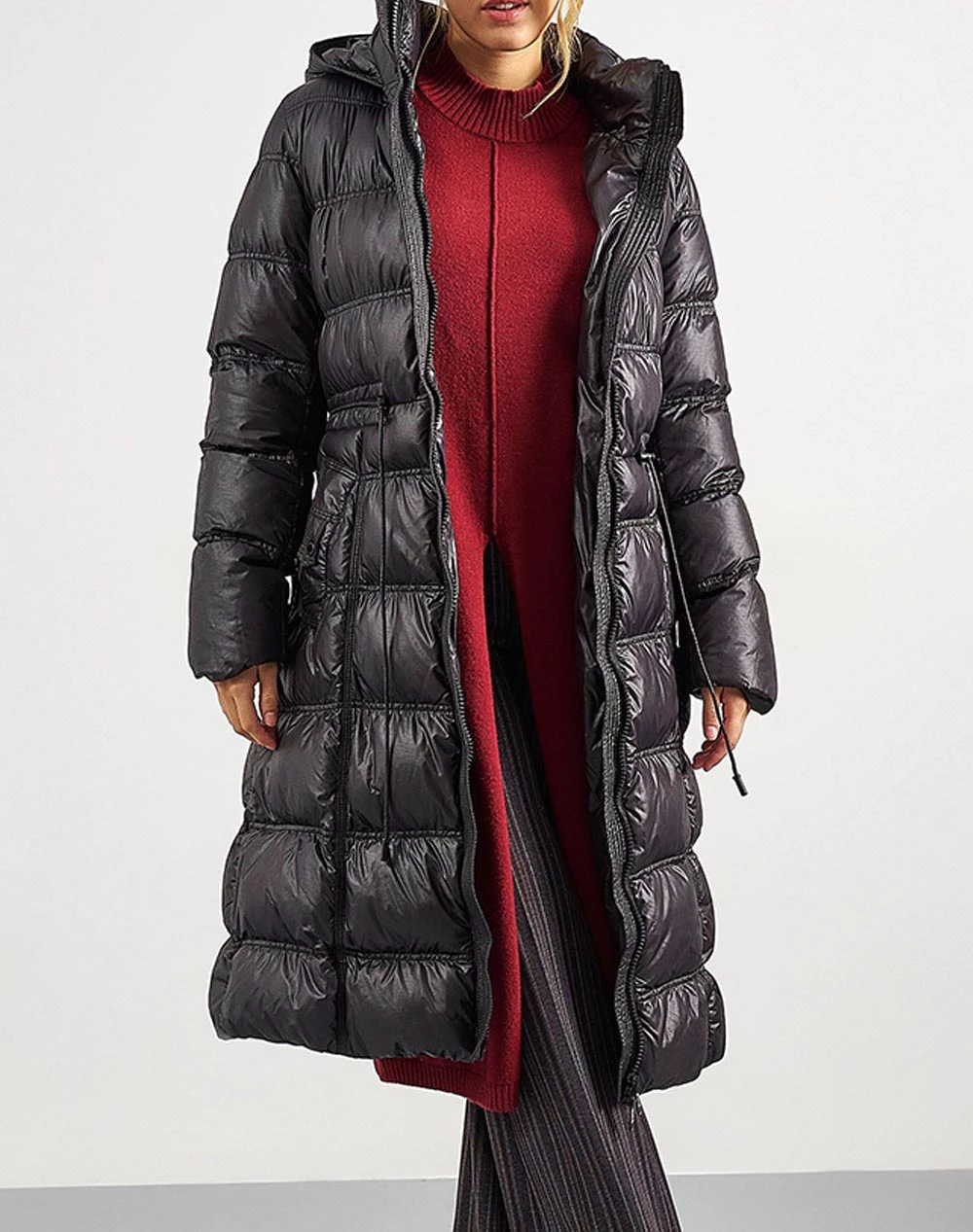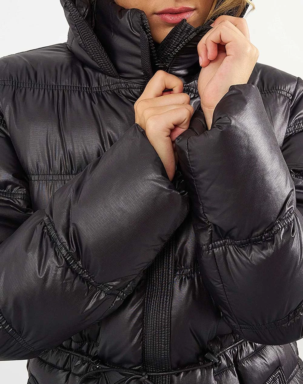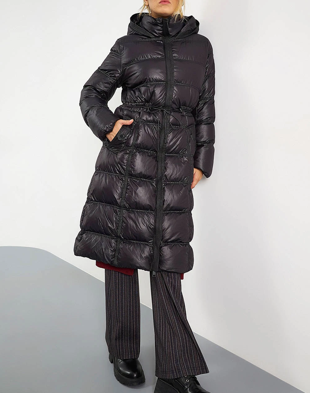Γυναικείο μπουφάν τύπου puffer, σε κανονική γραμμή, με κουκούλα, τσέπες στο πλάι και κλείσιμο με φερμουάρ. ( Σύνθεση: 100% Πολυεστέρας)