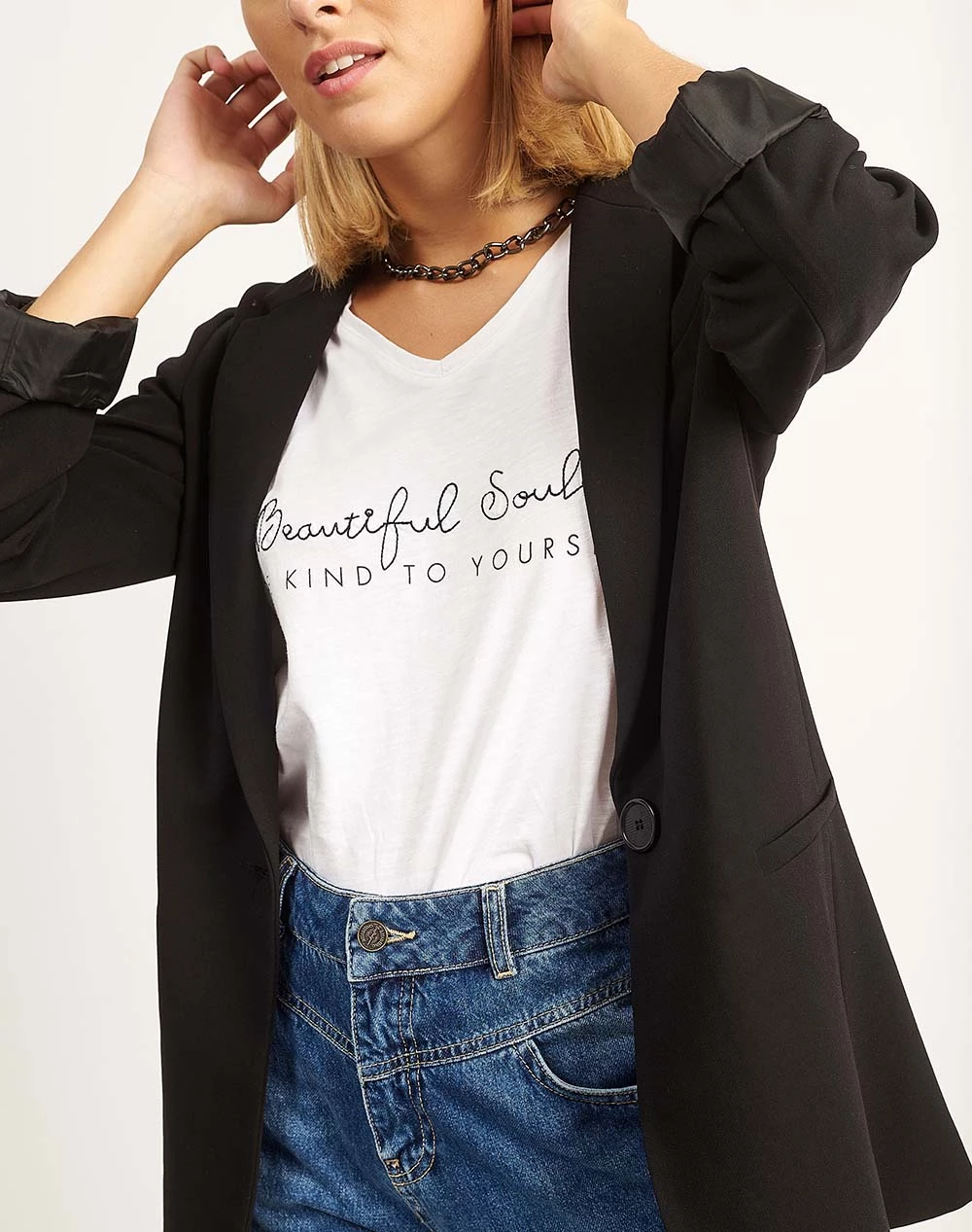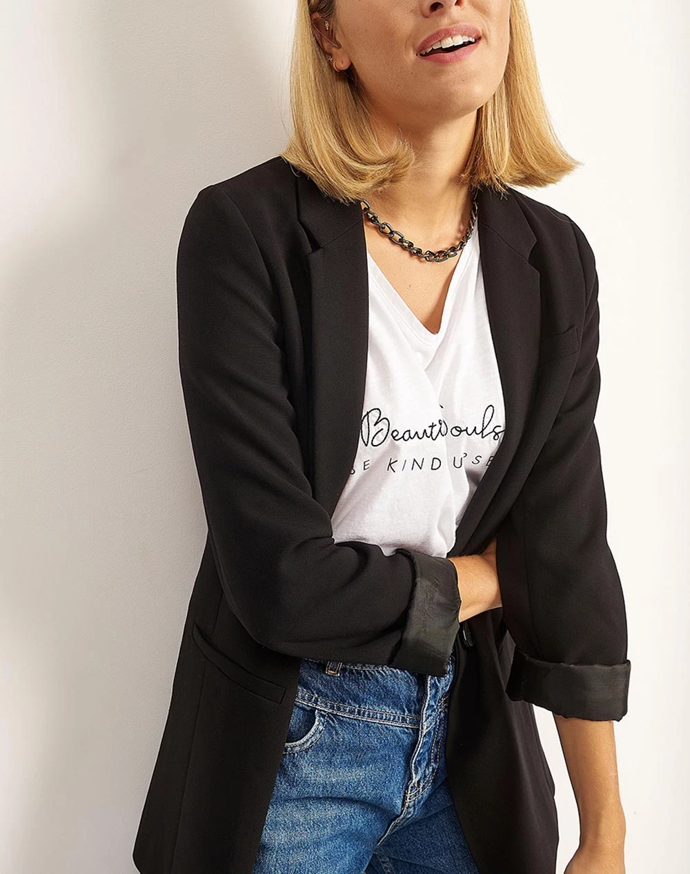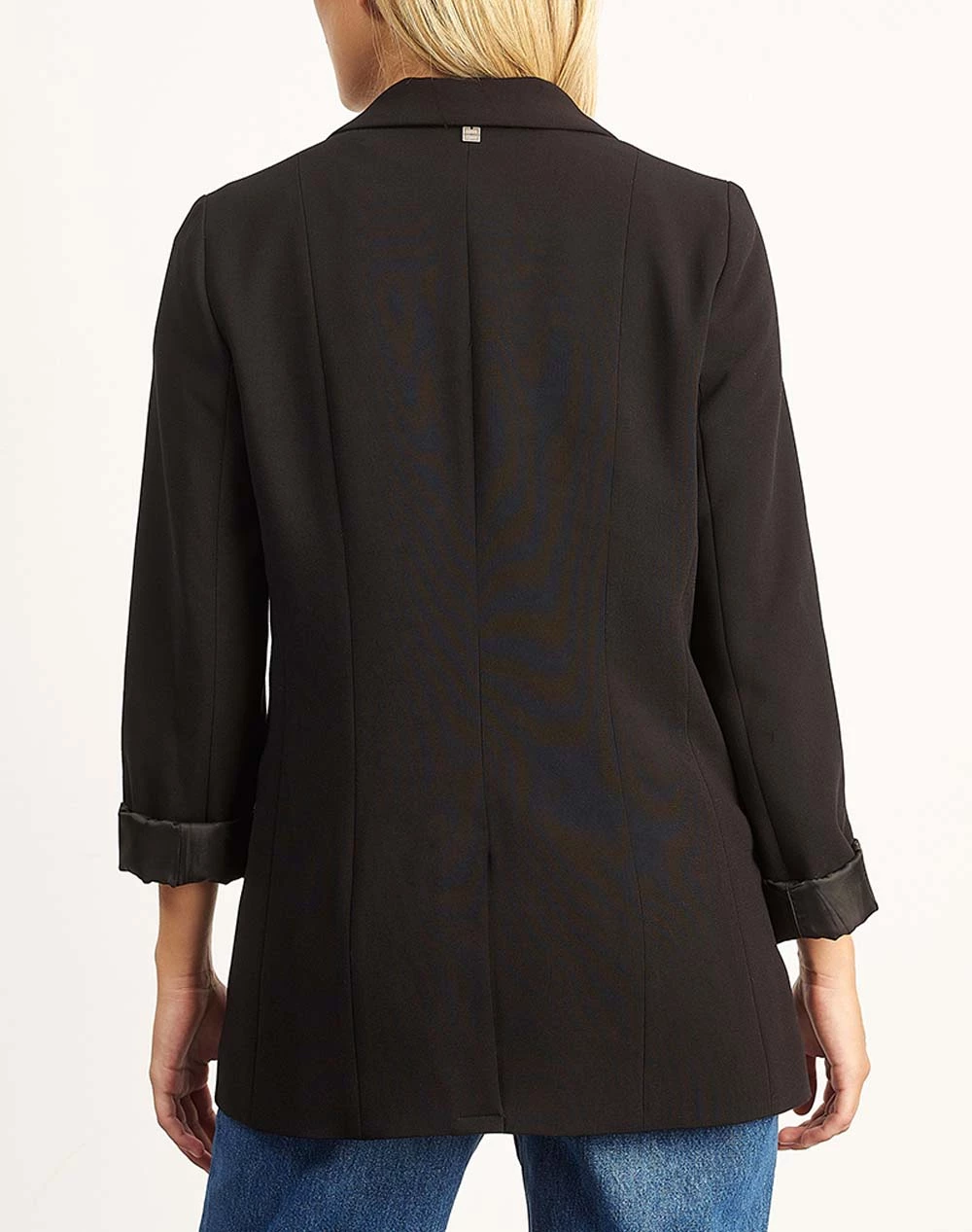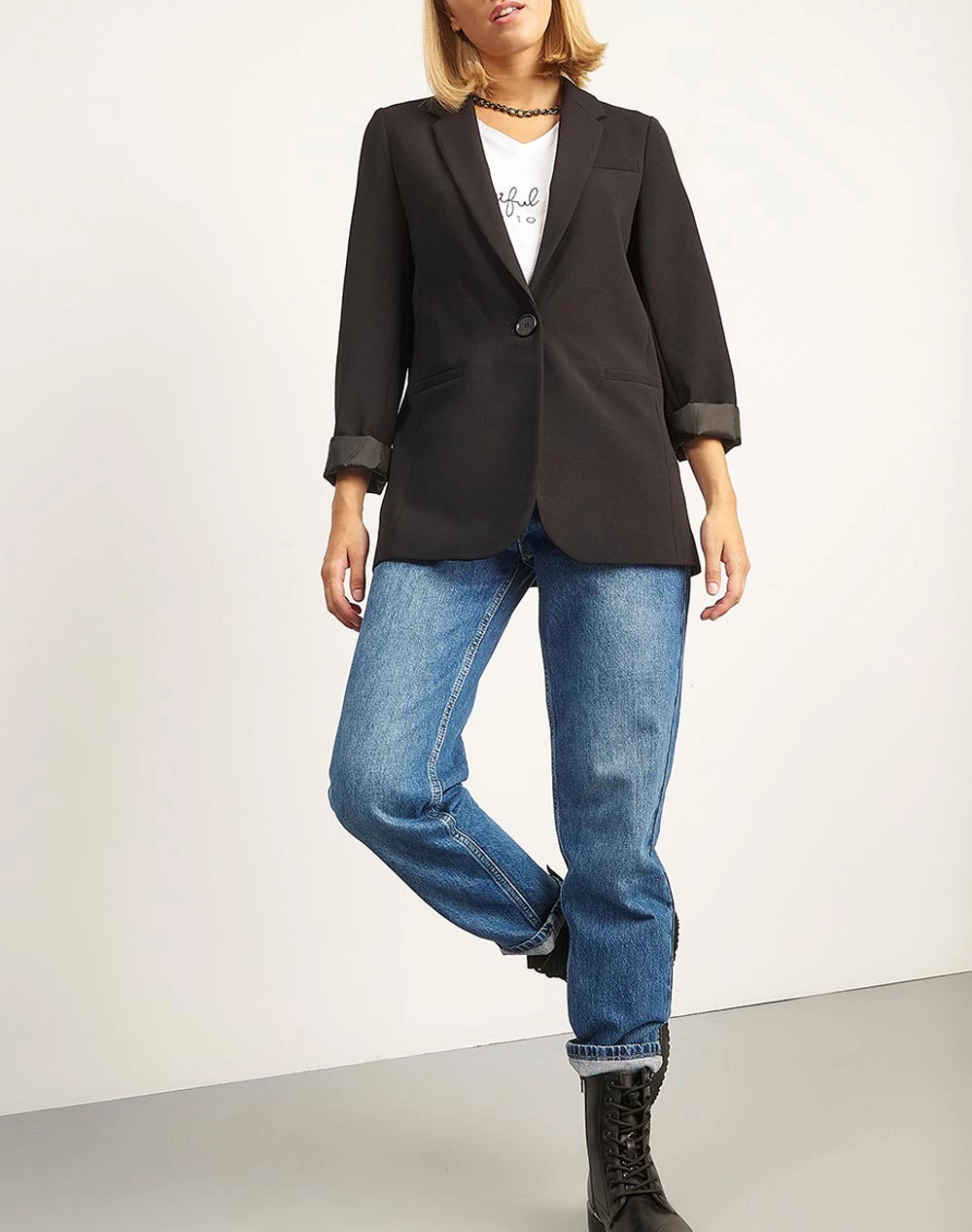 Σακάκι μονόχρωμο γυναικείο σε κανονική εφαρμογή, με διακοσμητικές τσέπες και κλείνει με κουμπία μπροστά. (Σύνθεση: 62% Πολυεστέρας, 32% Βισκόζη, 6% Ελαστάνη)