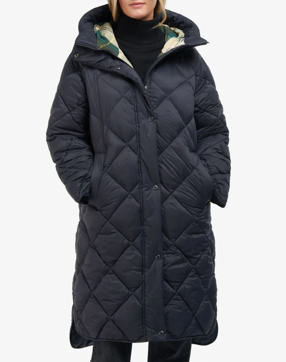 Γυναικείο μακρύ μπουφάν με καπιτονέ όψη και μακριά μανίκια. Διαθέτει κουκούλα, πλαινές τσέπες και κλείσιμο με φερμουάρ και κουμπιά. ( Σύνθεση: 100% Πολυαμίδιο )