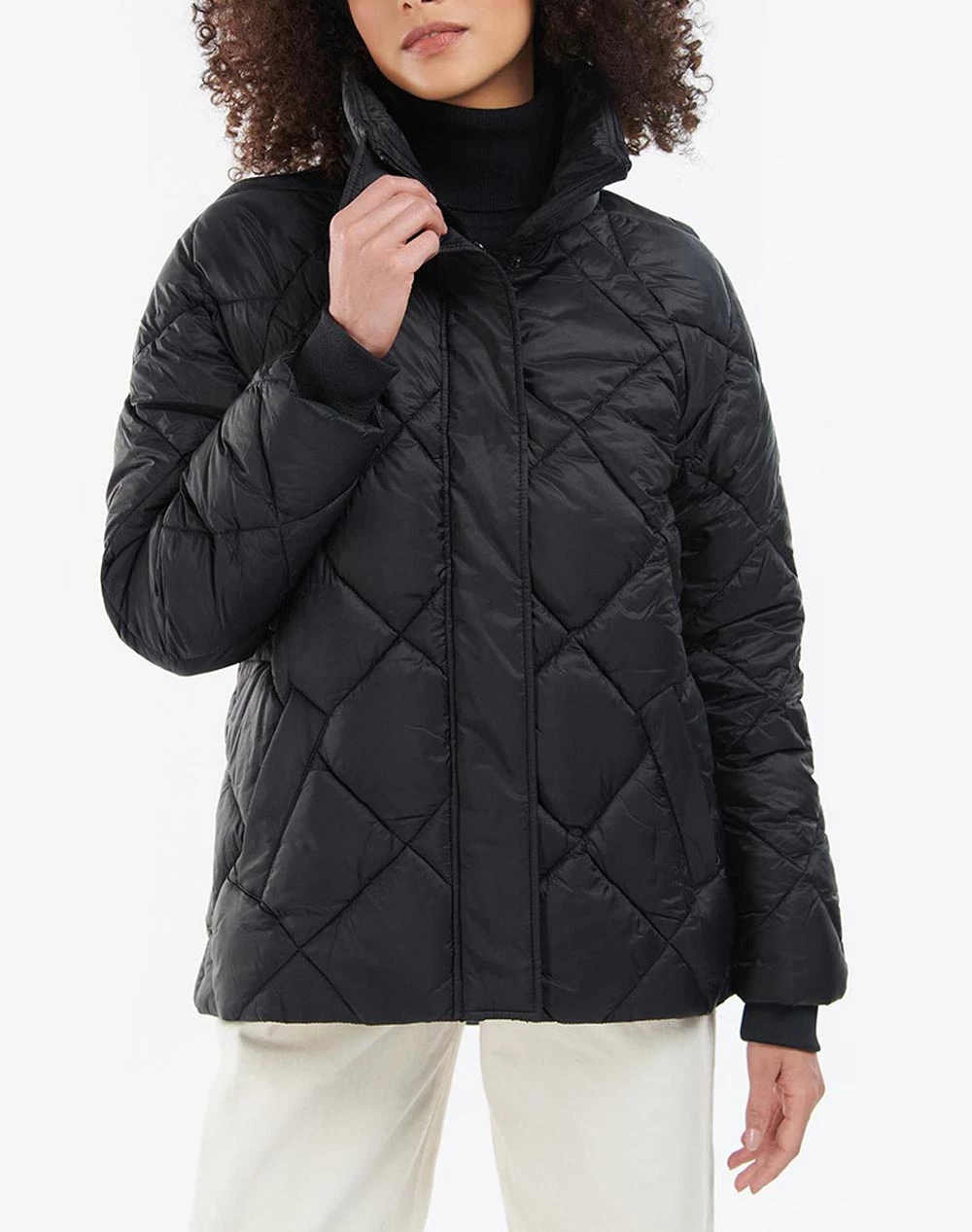 Μπουφάν μονόχρωμο γυναικείο με καπιτονέ σχέδιο. Κλείνει με φερμουάρ και κουμπιά και διαθέτει πλαϊνές τσέπες. (Σύνθεση: 100% Πολυαμίδη)