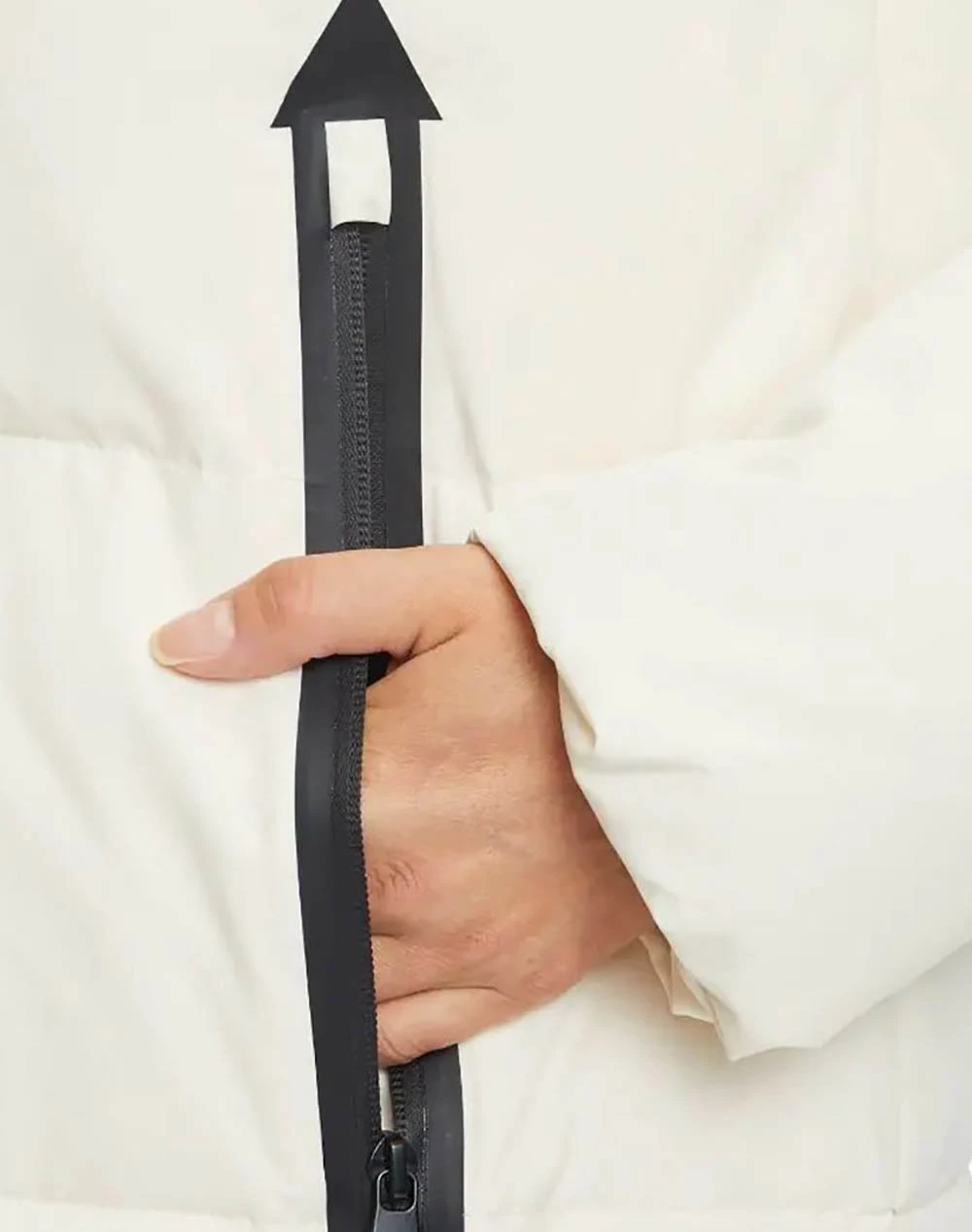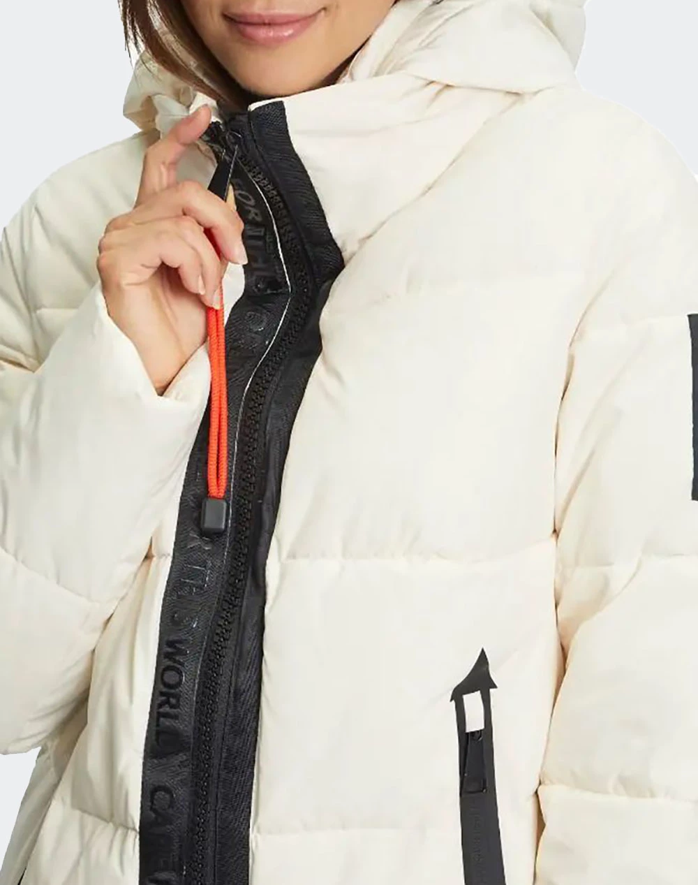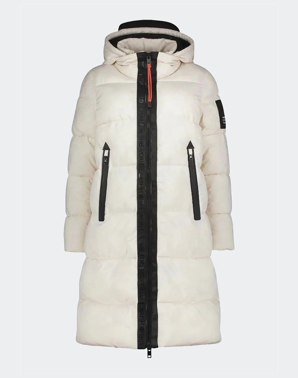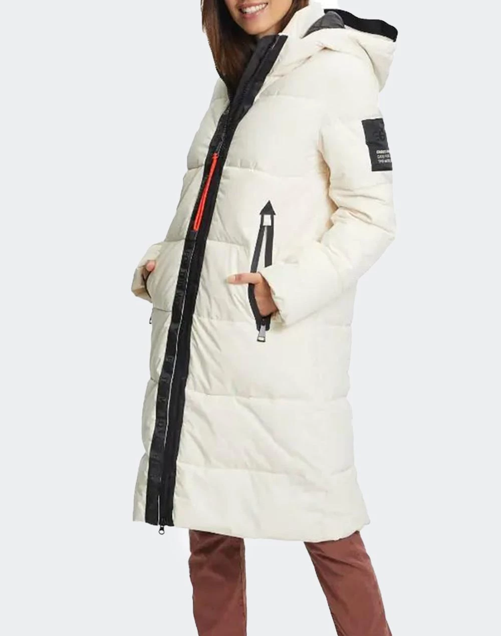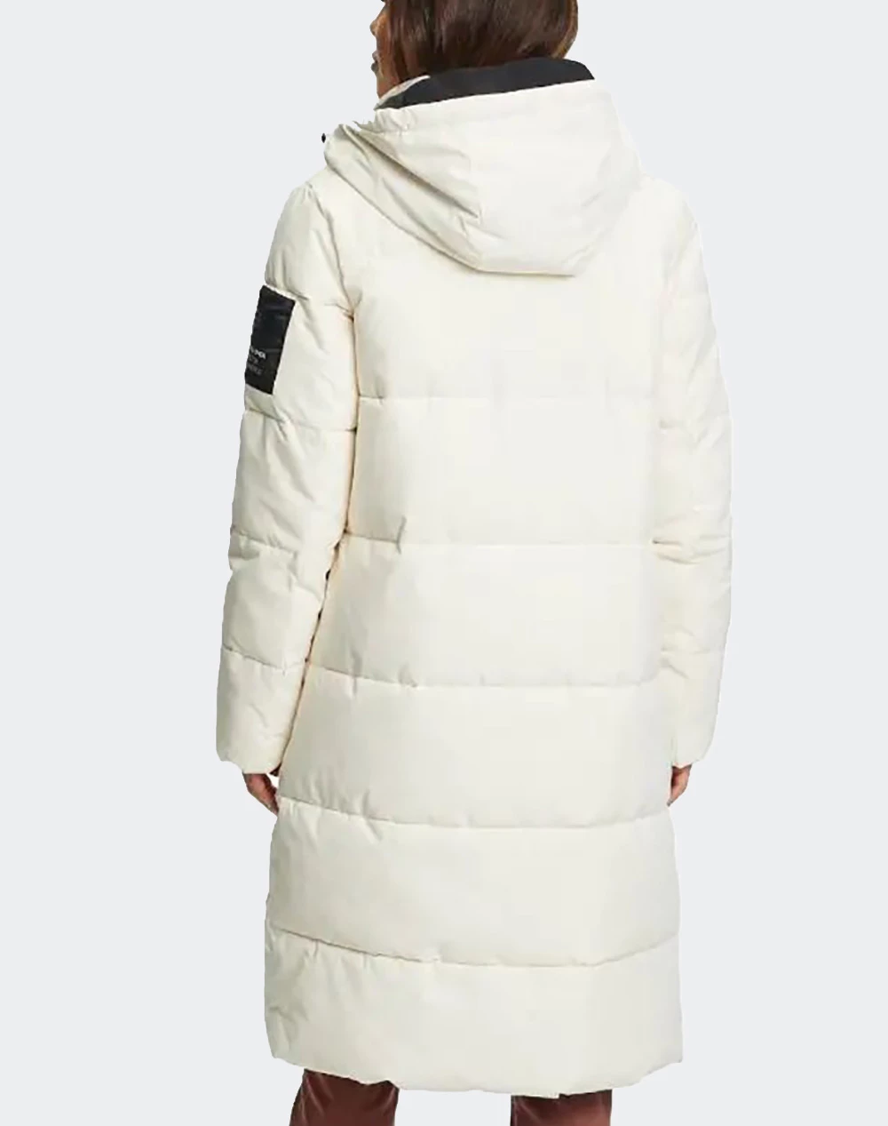 Γυναικείο μακρύ μπουφάν τύπου puffer, σε κανονική γραμμή, με τσέπες στο πλάι, κουκούλα, κλείσιμο με φερμουάρ και κεντημένο λογότυπο στο μανίκι. ( Σύνθεση: 100% Πολυεστέρας )
