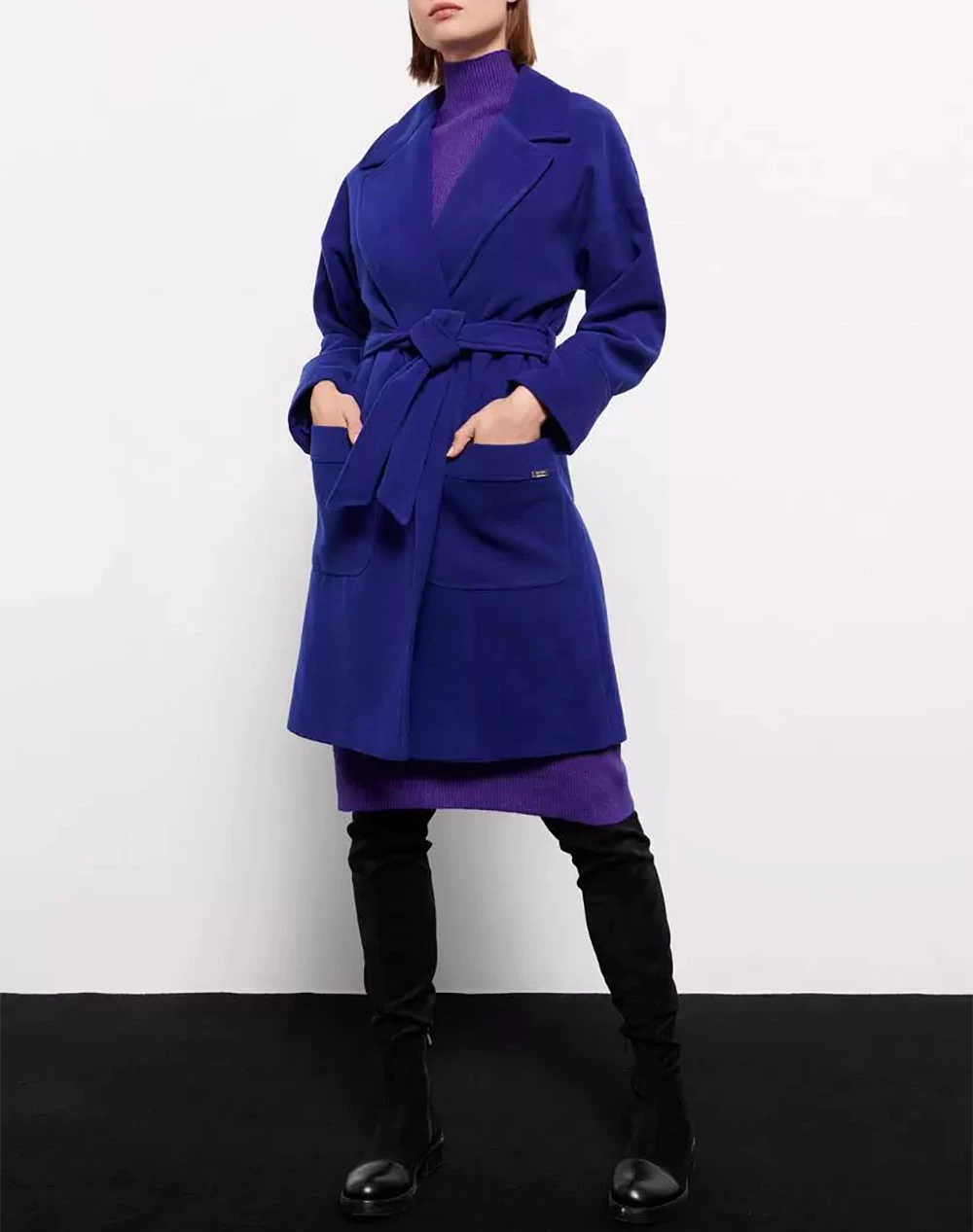 Γυναικέιο ημίπαλτο ανοιχτό με πέτο στο γιακά, μακρύ μανίκι και ζώνη ίδιου ύφασματος στη μέση. (Σύνθεση: 90% Πολυεστέρας, 8% Ρεγιον, 2% Σπάντεξ)