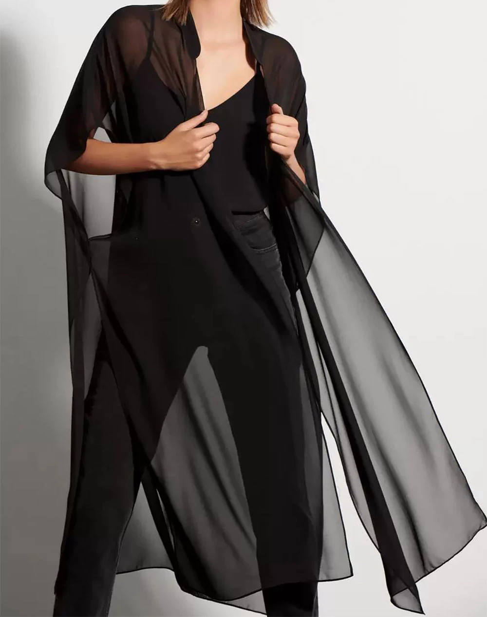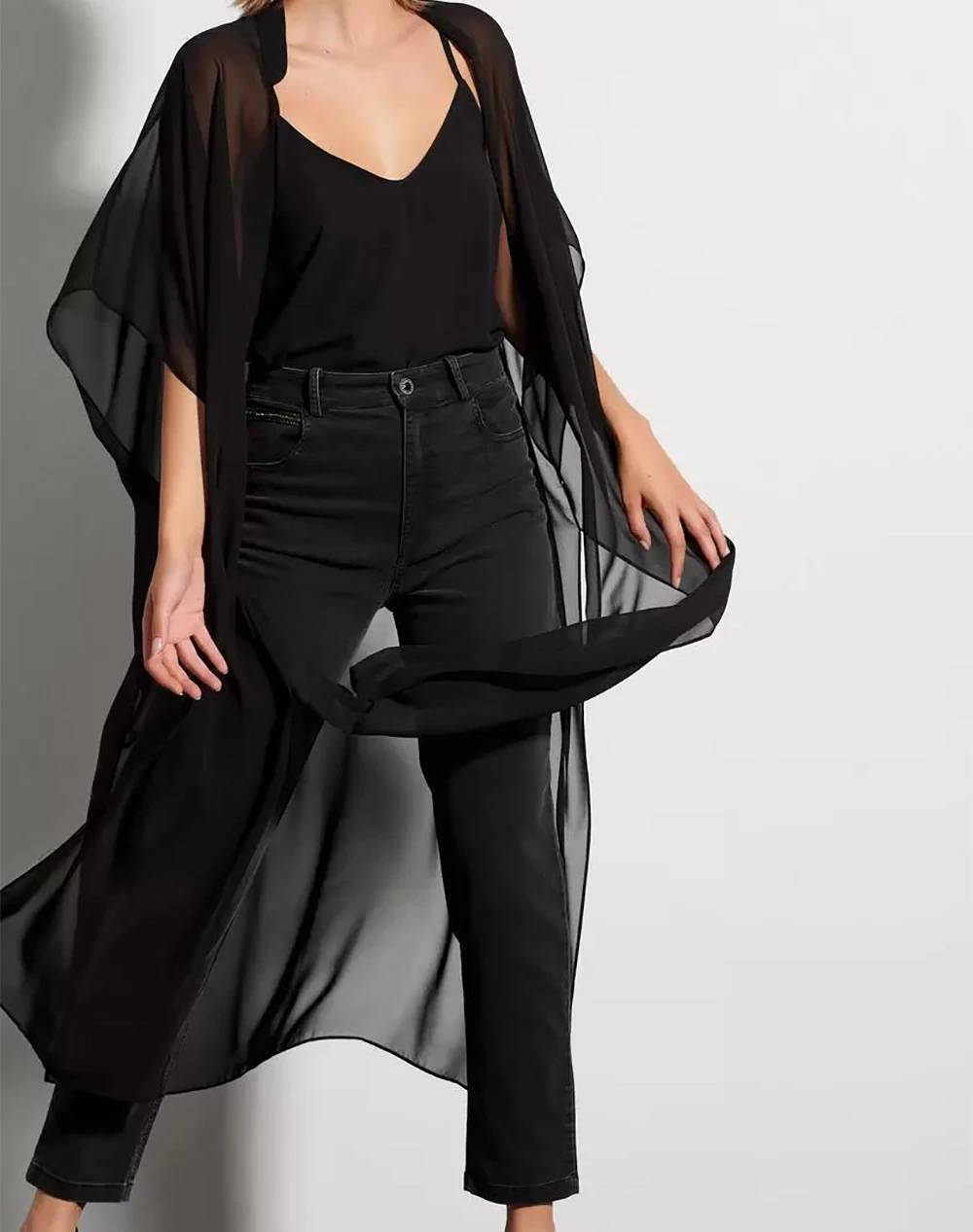 Κιμονό μονόχρωμο σε One Size μεγεθος. Διαθέτει ιδιαίτερο μαο γιακά και μανίκι καμπάνα. Καλύπτει μεγέθη από Small μέχρι Large. (Σύνθεση: 100% Πολυεστέρας)