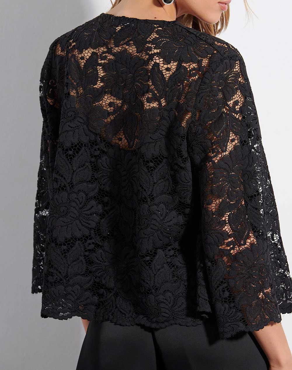 Γυναικείο μπολερό, από βαμβάκι, με δαντέλα, ιδανικό για όλες τις ώρες τις μέρας. ( Σύνθεση: 51% Βαμβάκι, 28% Πολυαστέρας, 21% Βισκόζη )