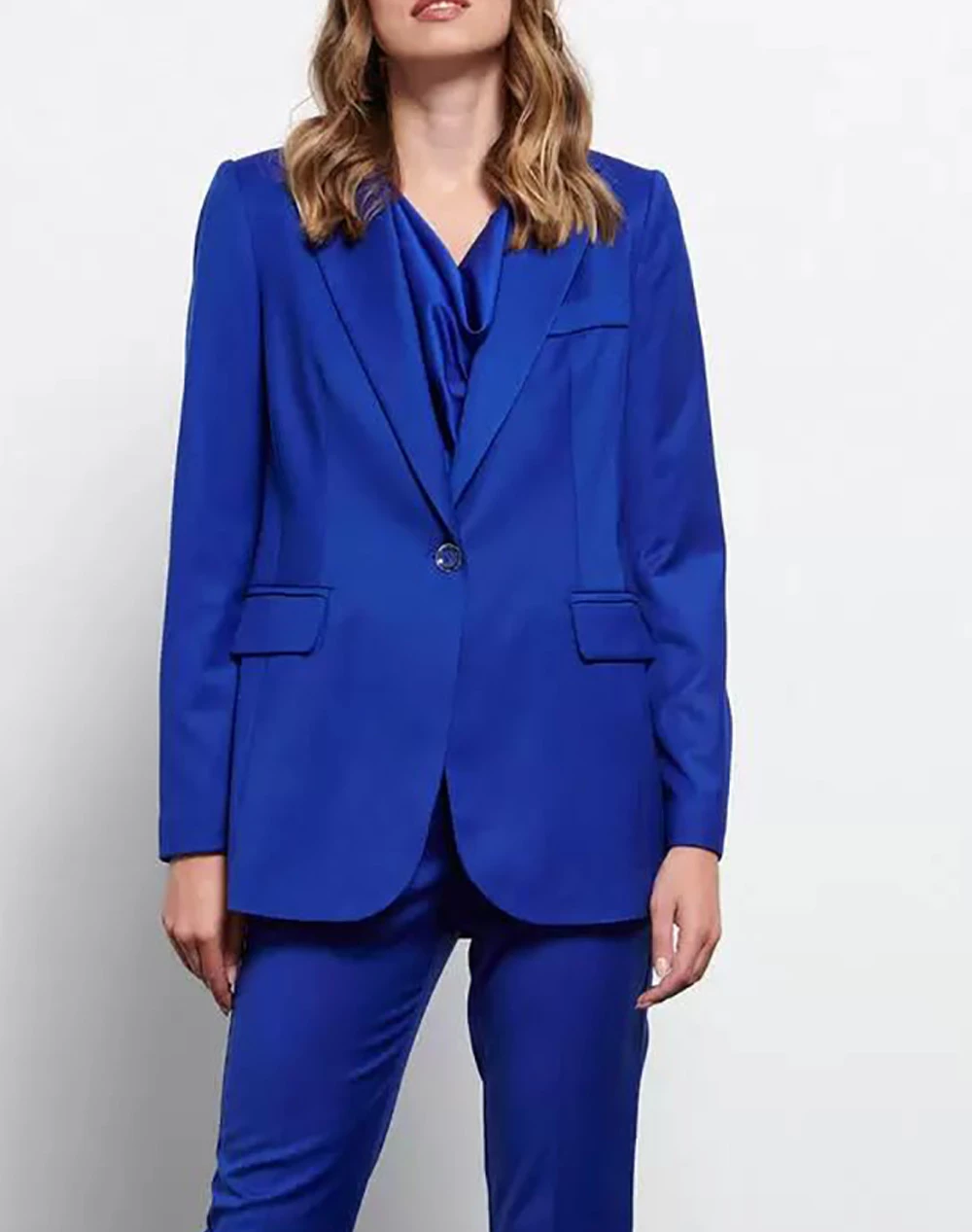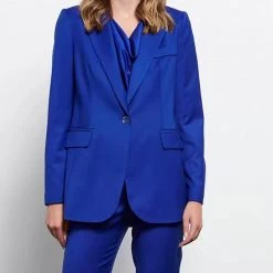 Γυναικείο Minimal blazer σε ίσια γραμμή. Γιακάς με πέτο και μακριά μανίκια. Μπροστινές τσέπες με πτερύγια. Κλείνει με κουμπί μπροστά. (Σύνθεση:62% Πολυεστέρας ,35% Ρεγιόν, 3% Σπάντεξ)