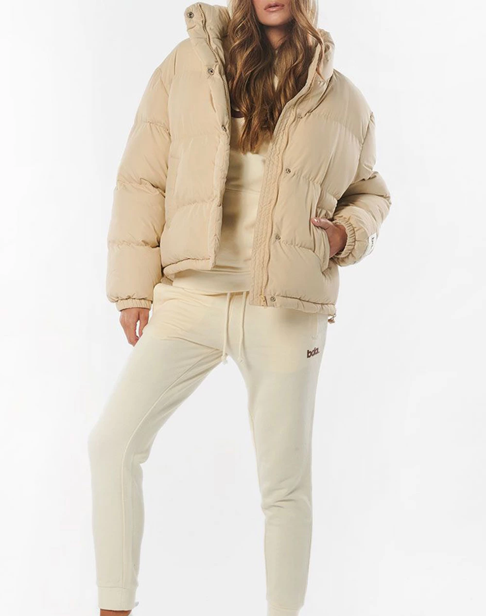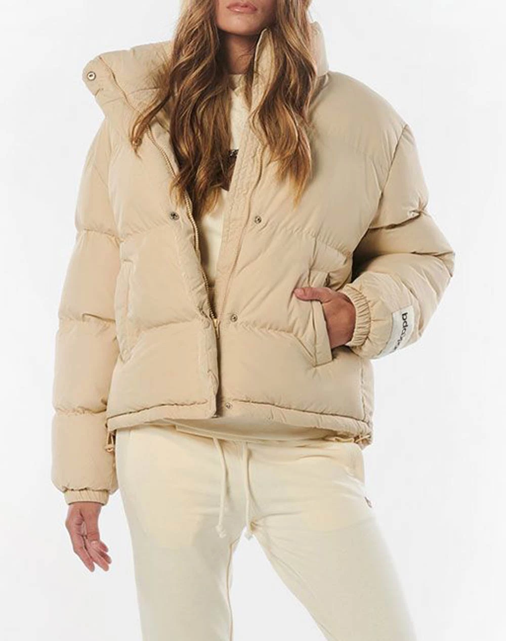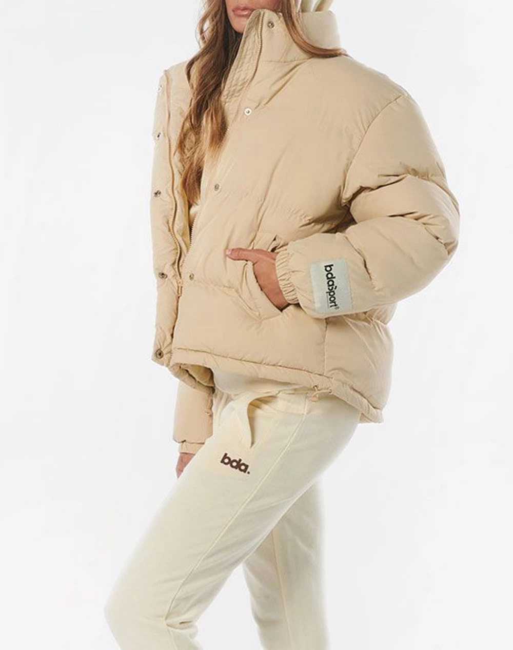 Γυναικείο μπουφάν τύπου puffer σε κανονική γραμμή, με κλείσιμο με κουμπιά και φερμουάρ. ( Σύνθεση: 100% Πολυεστέρας )