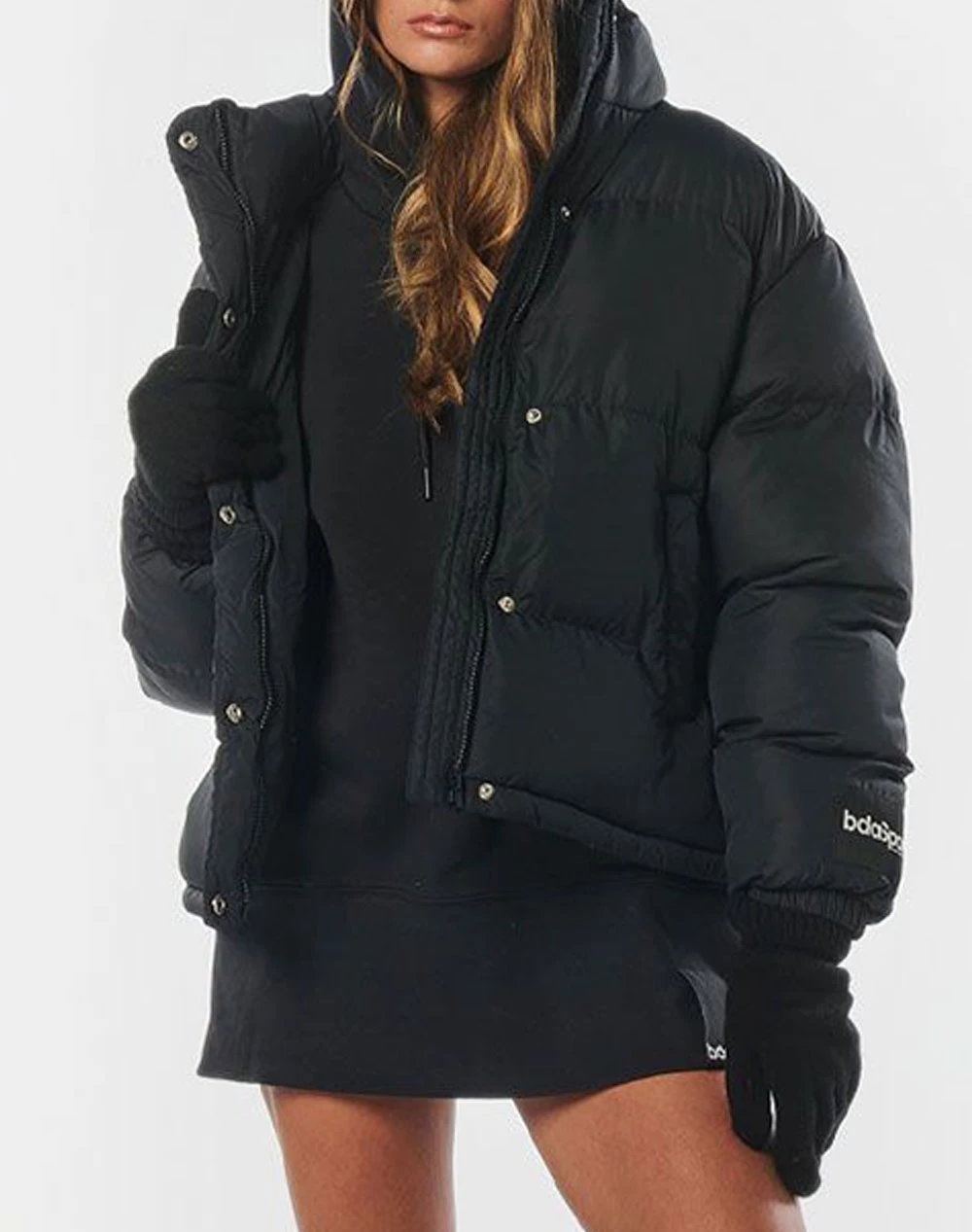 Γυναικείο μπουφάν τύπου puffer σε κανονική γραμμή, με κλείσιμο με κουμπιά και φερμουάρ. ( Σύνθεση: 100% Πολυεστέρας )