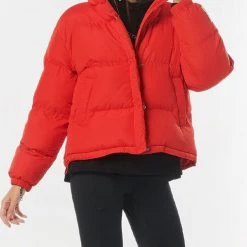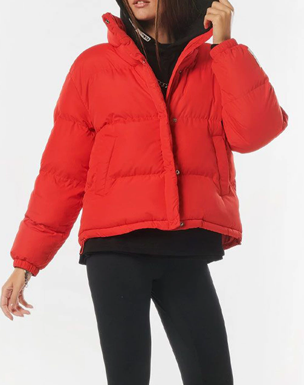Γυναικείο μπουφάν τύπου puffer σε κανονική γραμμή, με κλείσιμο με κουμπιά και φερμουάρ. ( Σύνθεση: 100% Πολυεστέρας )