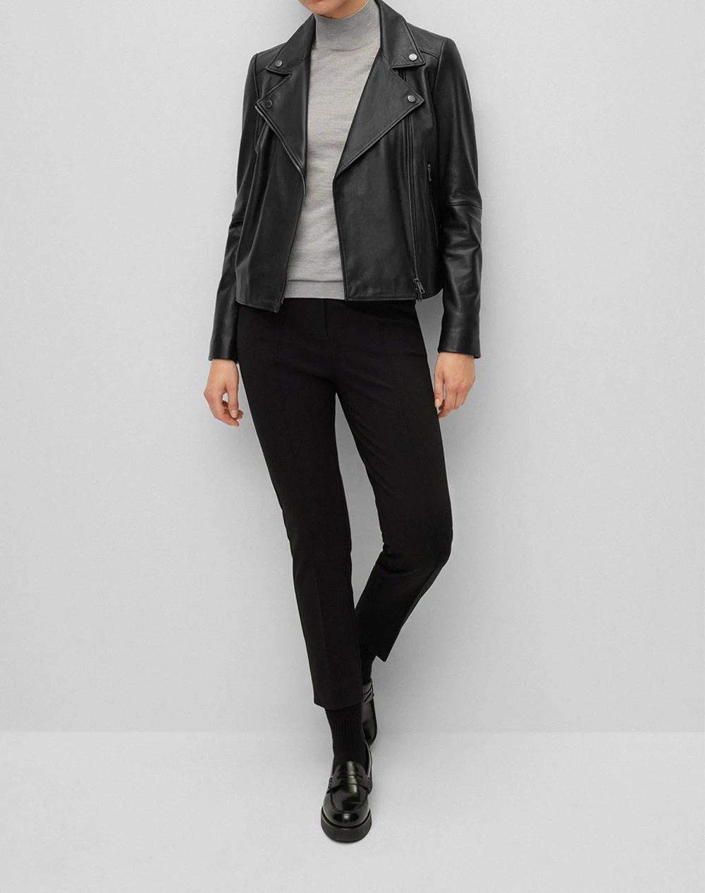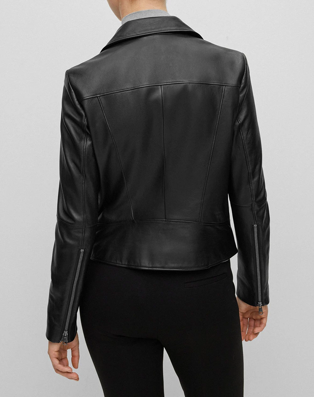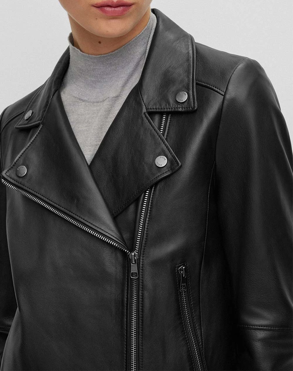 Γυναικείο δερμάτινο μπουφάν σε κανονική γραμμή, με τσέπες στο πλαί και κλείσιμο με φερμουάρ. ( Σύνθεση: 100% Δέρμα )
