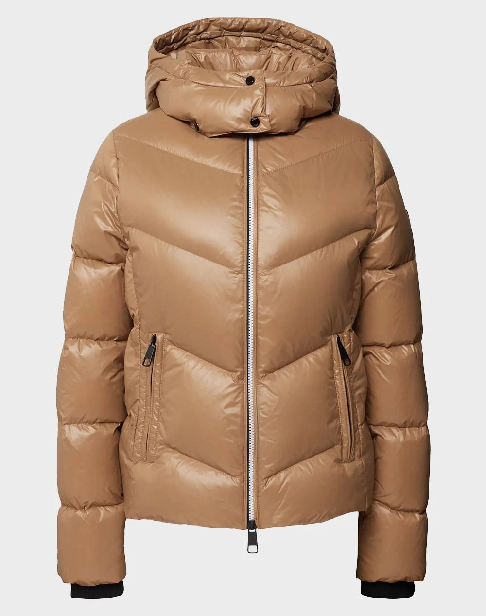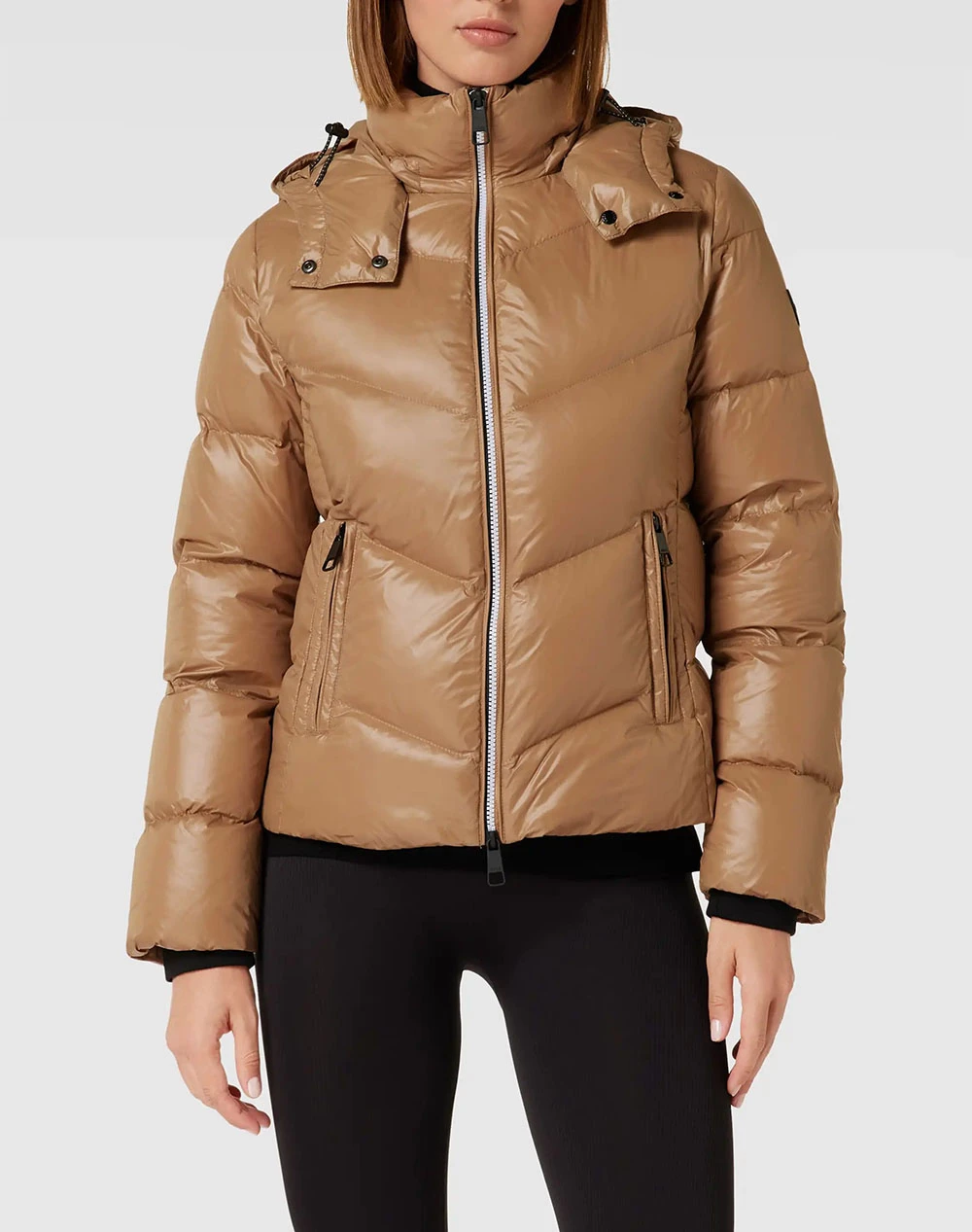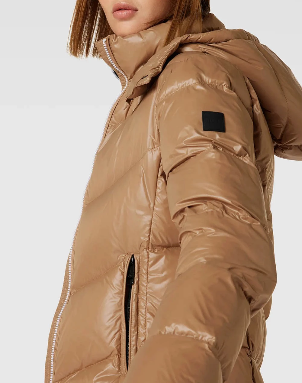 Γυναικείο μπουφαν σε κανονική γραμμή, με κουκούλα, τσέπες στο πλάι και κλείσιμο με φερμουάρ. ( Σύνθεση: 100% Πολυαμίδιο )