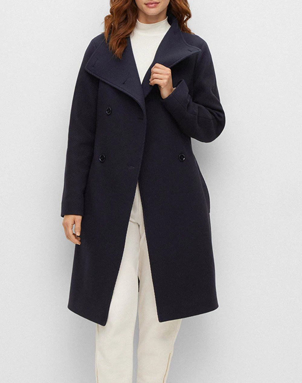 Γυναικείο παλτό σε άνετη γραμμή, με τσέπες στο πλάι,διπλό κλείσιμο με κουμπια και ψηλό γιακά. ( Σύνθεση: 80% Μαλλί, 20% Πολυαμίδιο )