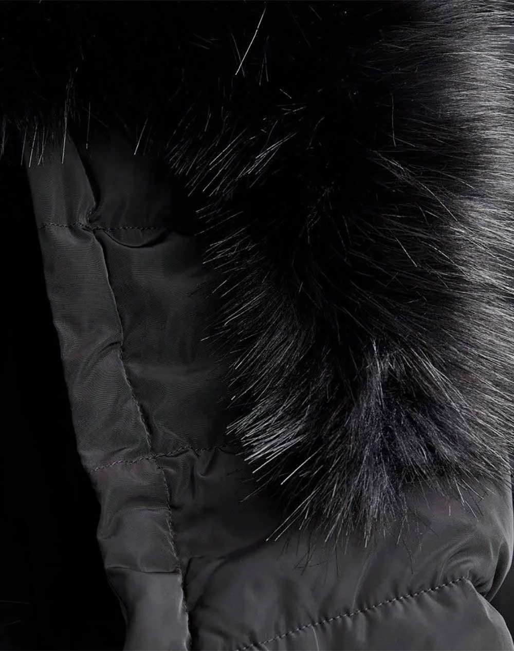 Γυναικείο μπουφάν τύπου puffer σε κανονική γραμμή, με κουκούλα με γούνα, τσέπες στο πλάι, κλείσιμο με φερμουάρ και κέντημα στο στήθος με το λογότυπο της εταιρείας. ( Σύνθεση: 100% Πολυεστέρας )