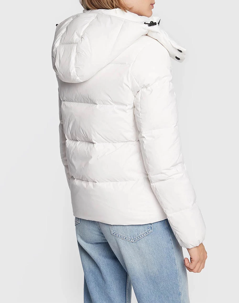 Γυναικείο μακρύ μπουφάν τύπου puffer σε κανονική γραμμή, με κουκούλα, κλείσιμο με φερμουάρ και τύπωμα στο στήθος με το λογότυπο της εταιρείας. ( Σύνθεση: 100% Πολυεστέρας )