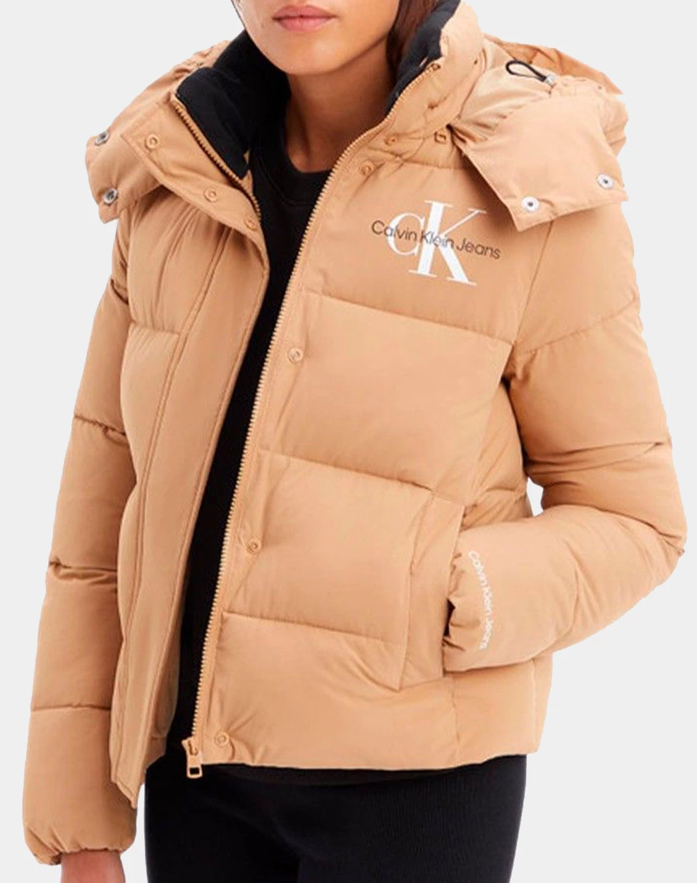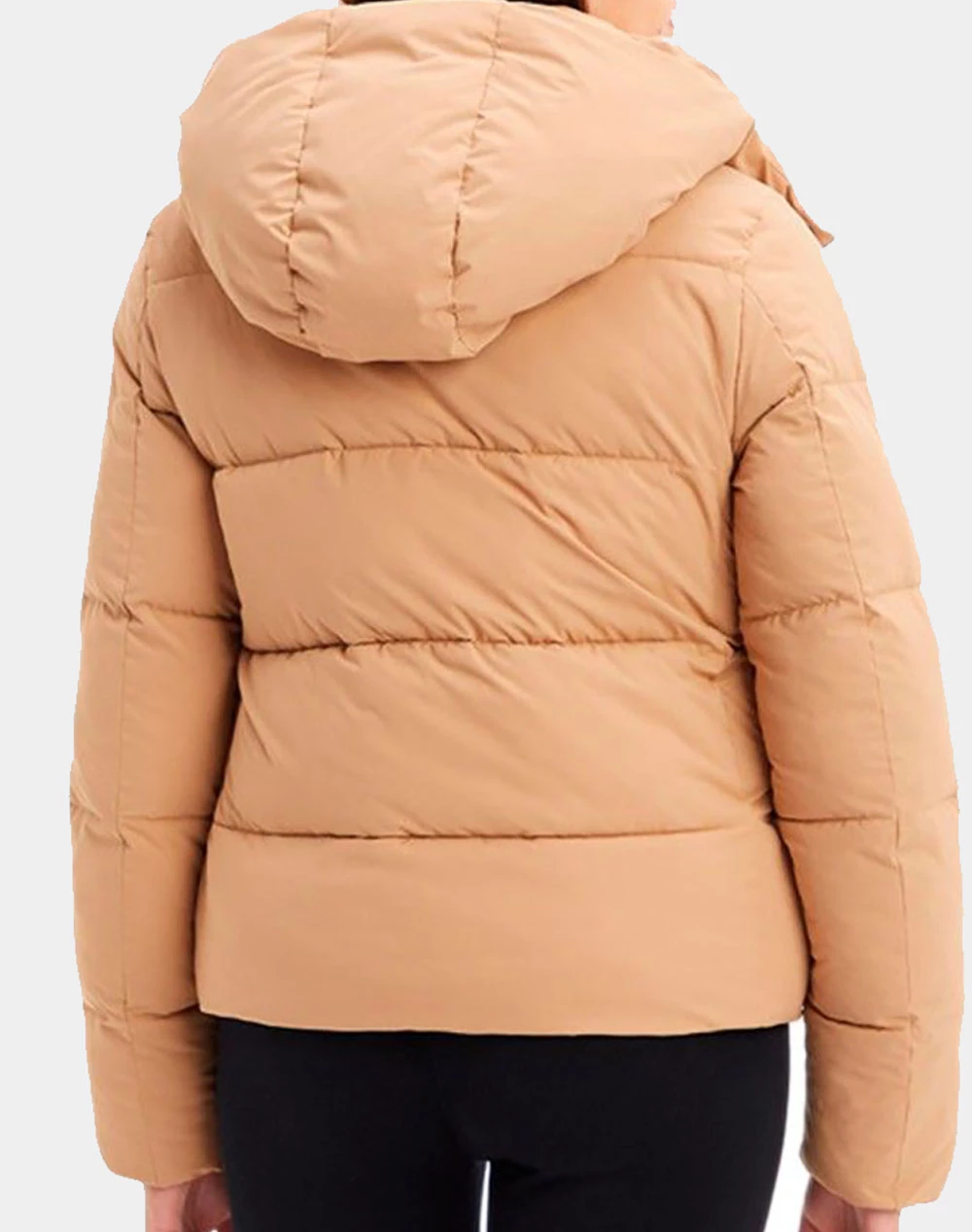 Γυναικείο μπουφάν τύπου puffer σε κανονική γραμμή, με αφαιρούμενη κουκούλα, τσέπς στο πλάι, κλείσιμο με φερμουάρ και κουμπια και λογότυπο της εταιρείας στο στήθος. ( Σύνθεση: 100% Πολυεστέρας )
