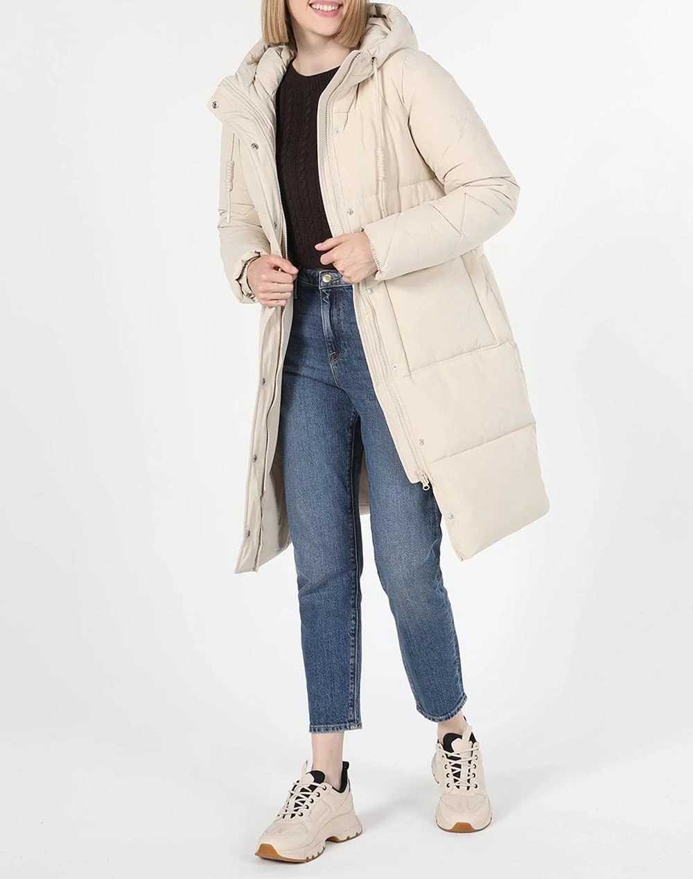 Μπουφάν μονόχρωμο με κουκούλα με ρυθμιζόμενο κορδόνι , τσέπες και κλείνει με φερμουάρ και κουμπάκια στη μπροστινή όψη. (Σύνθεση: 100% Πολυεστέρας)