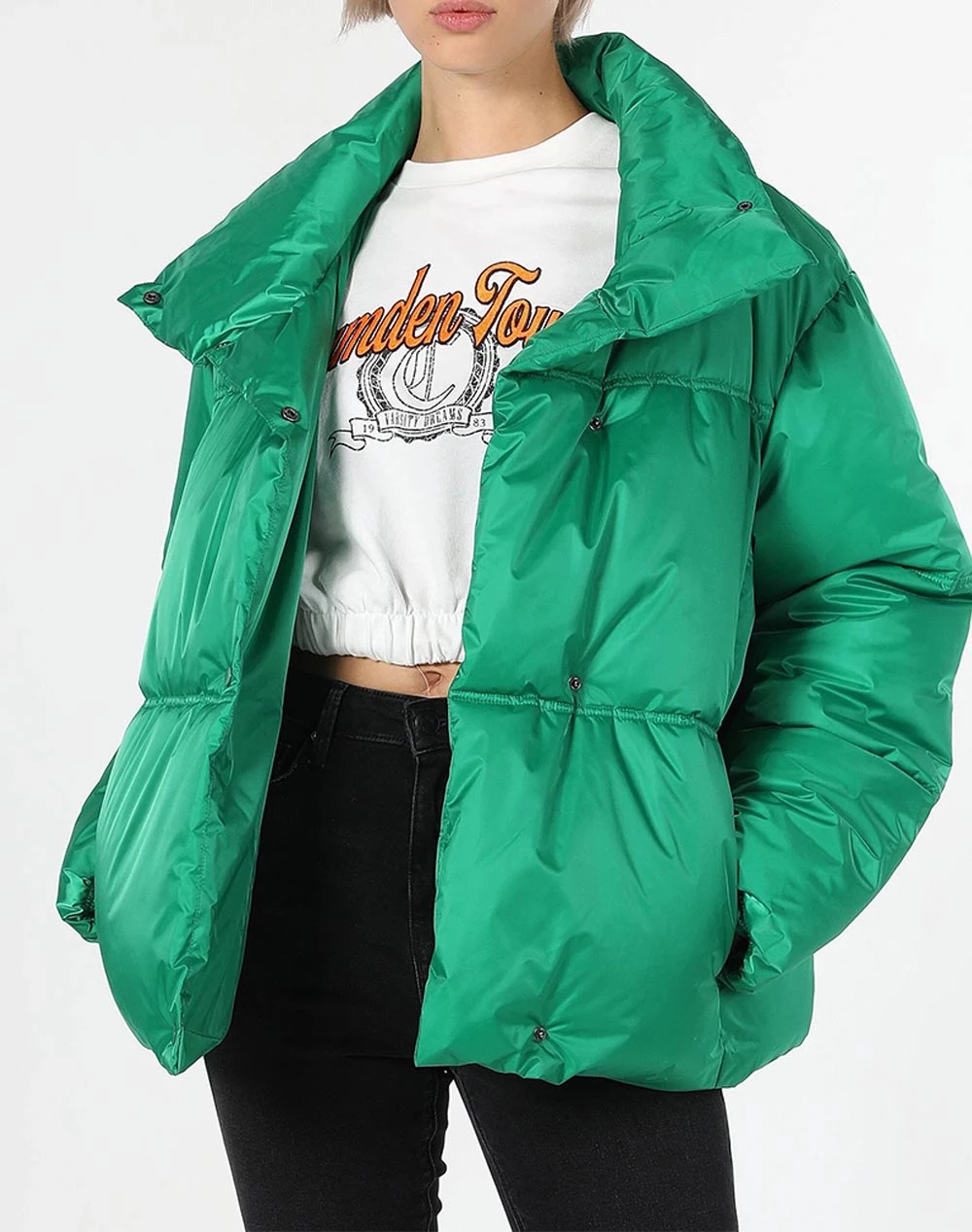 Γυναικείο μπουφάν τύπου puffer σε κανονική γραμμή, με τσέπες στο πλάι, ψηλό λαιμό και κλείσιμο με φερμουάρ. ( Σύνθεση: 100% Πολυεστέρας )