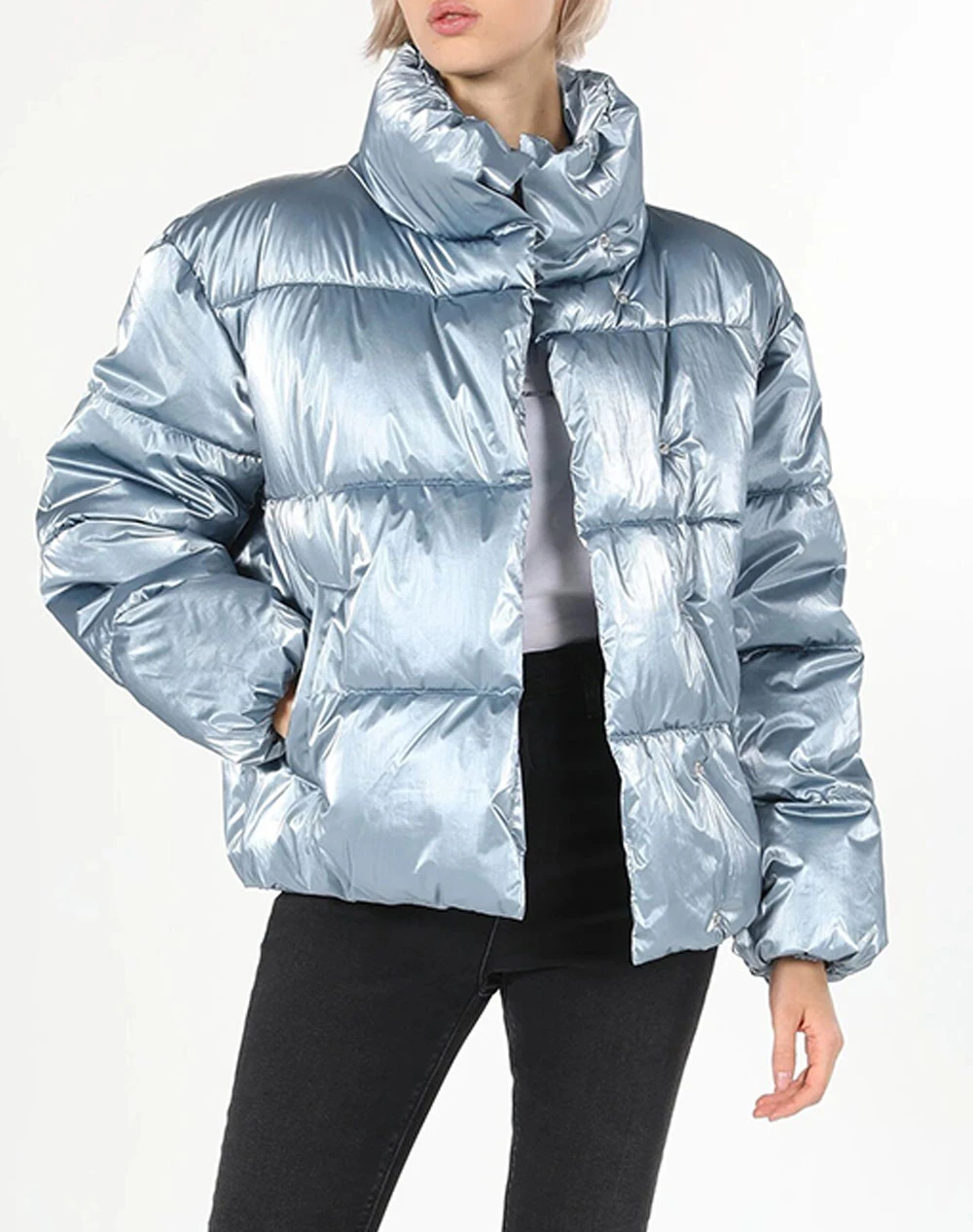 Γυναικείο μπουφάν σε κανονική γραμμή, με τσέπες στο πλάι, κλείσιμο με φερμουάρ και ψηλό λαιμό. ( Σύνθεση: 100% Πολυεστέρας )