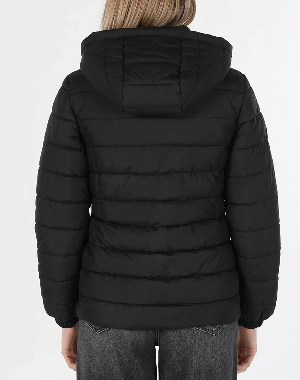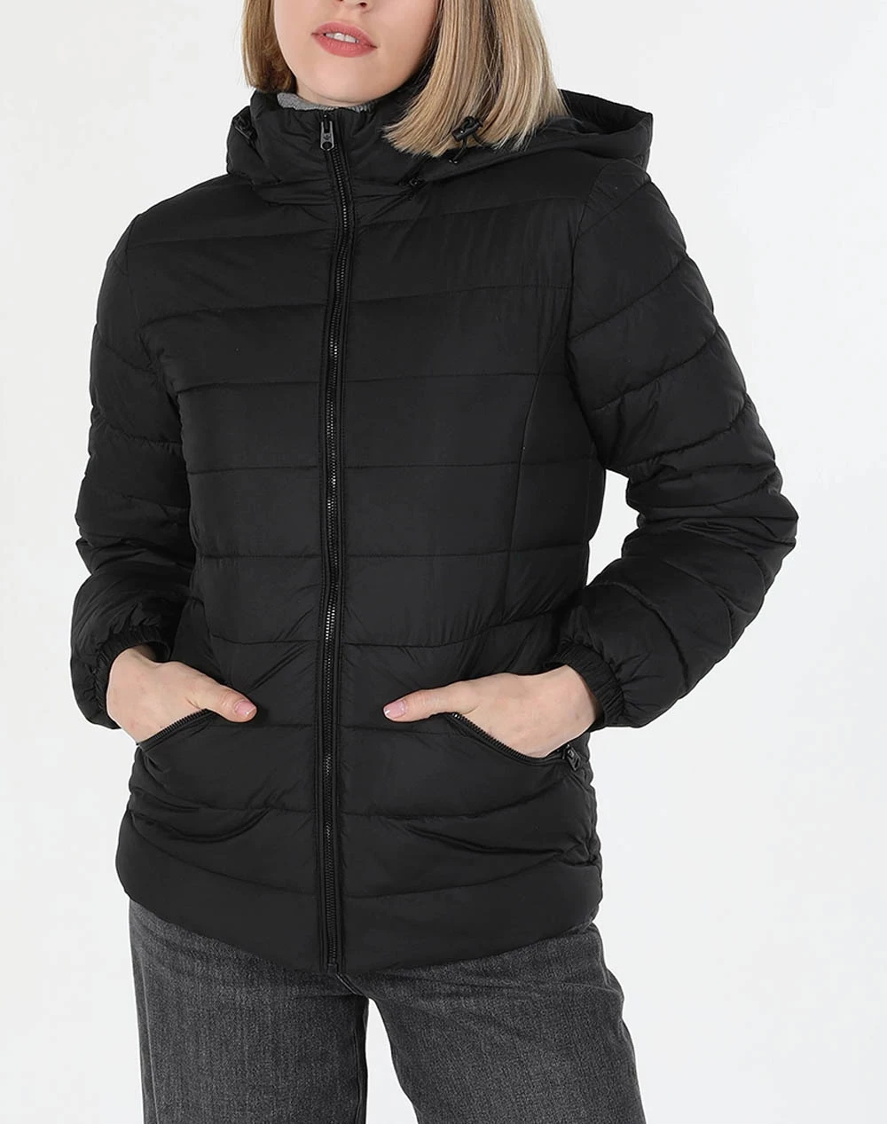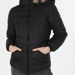 Γυναικείο μπουφάν τύπου puffer σε κανονική γραμμή, με κουκούλα, τσέπες στο πλάι και κλείσιμο με φερμουάρ. ( Σύνθεση: 100% Πολυεστέρας )