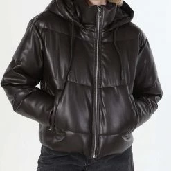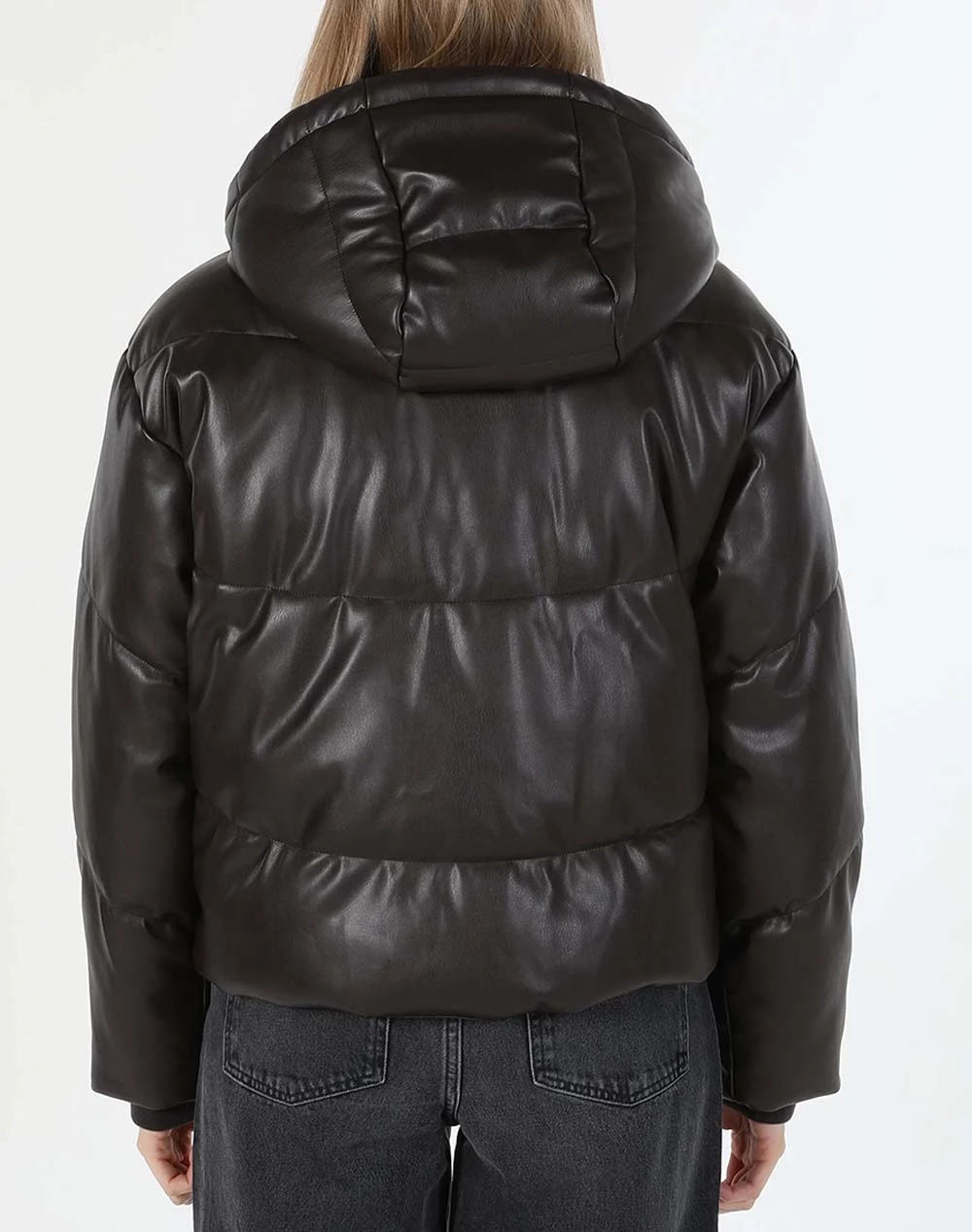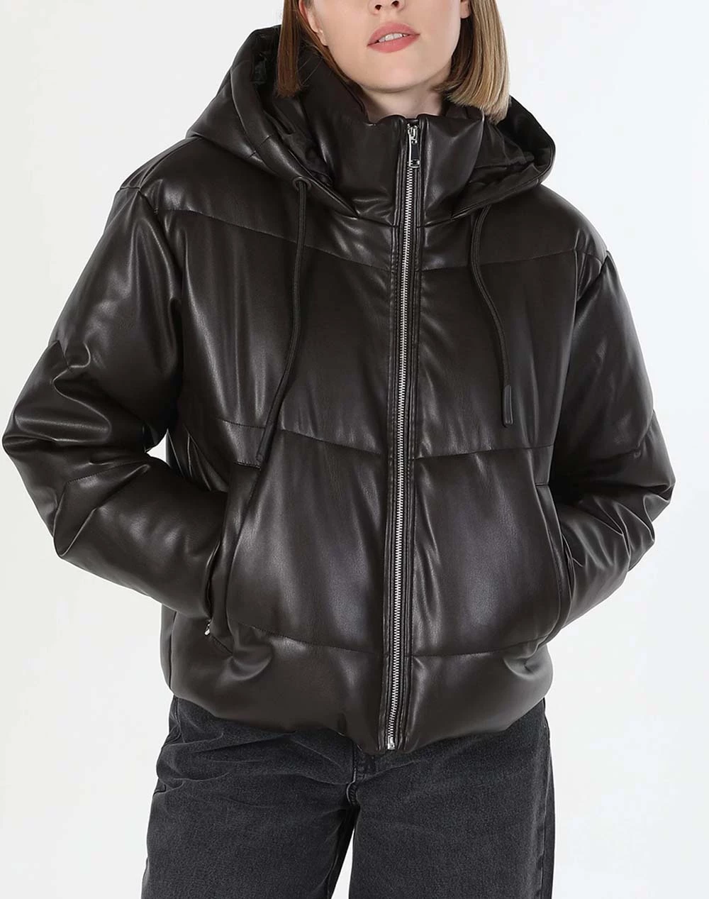 Γυναικείο μπουφάν τύπου puffer σε κανονική γραμμή, με κουκούλα, τσέπες στο πλάι και κλείσιμο με φερμουάρ. ( Σύνθεση: 100% Συνθετικό )