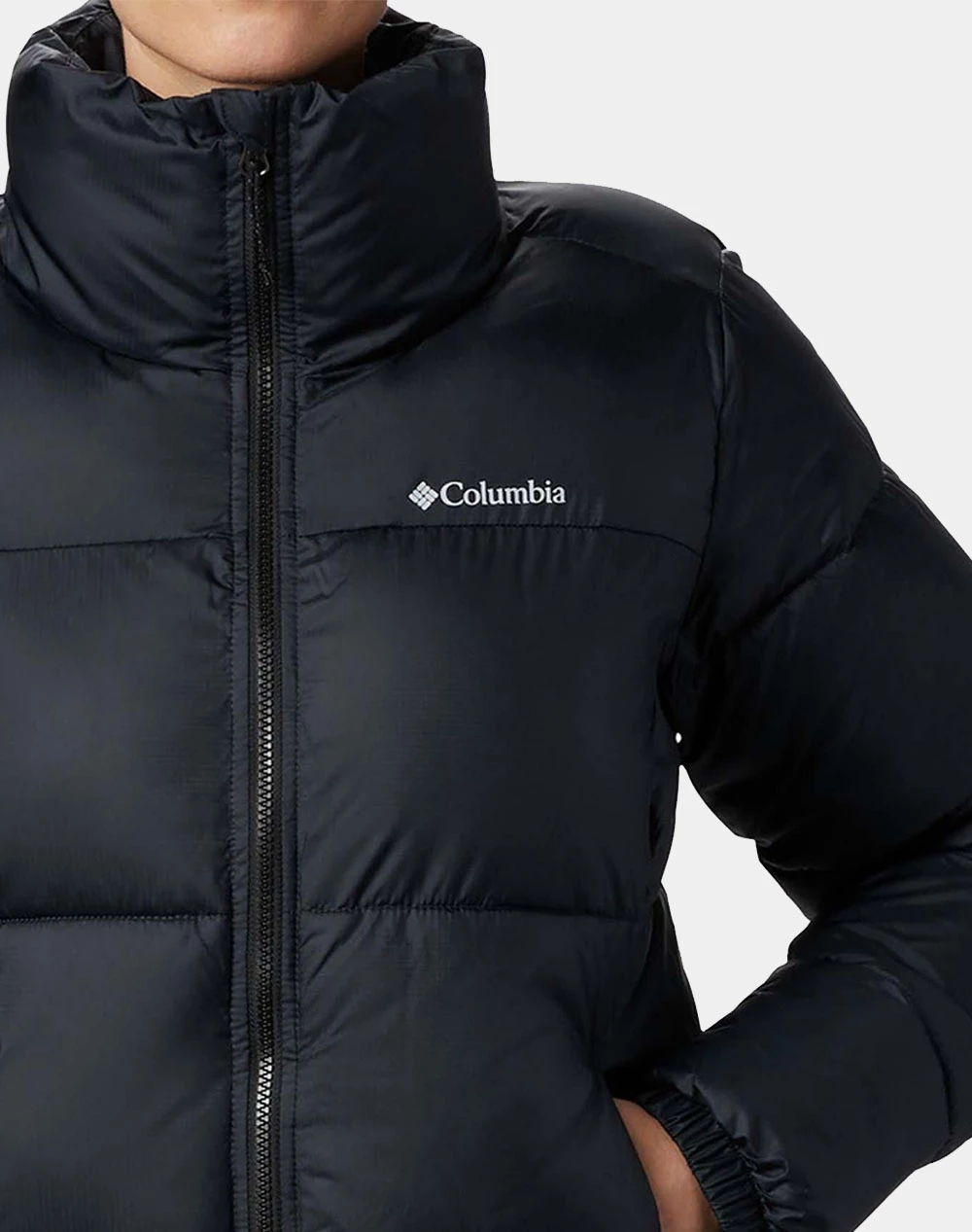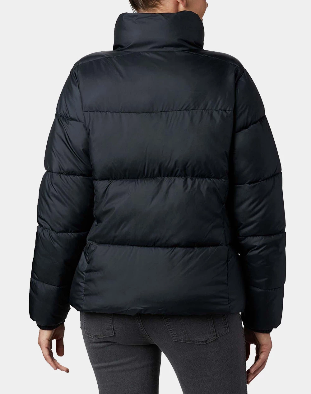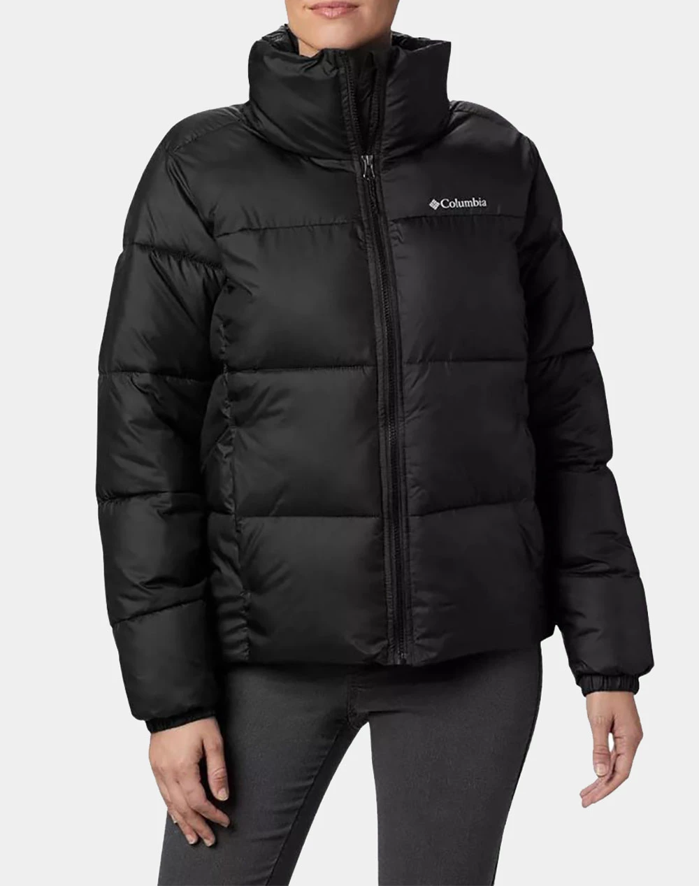 Γυναικείο μπουφάν τύπου puffer πουπουλένιο, με ψηλό λαιμό και κλείσιμο με φερμουάρ .(Συνθεση 100% Πολυεστέρας)