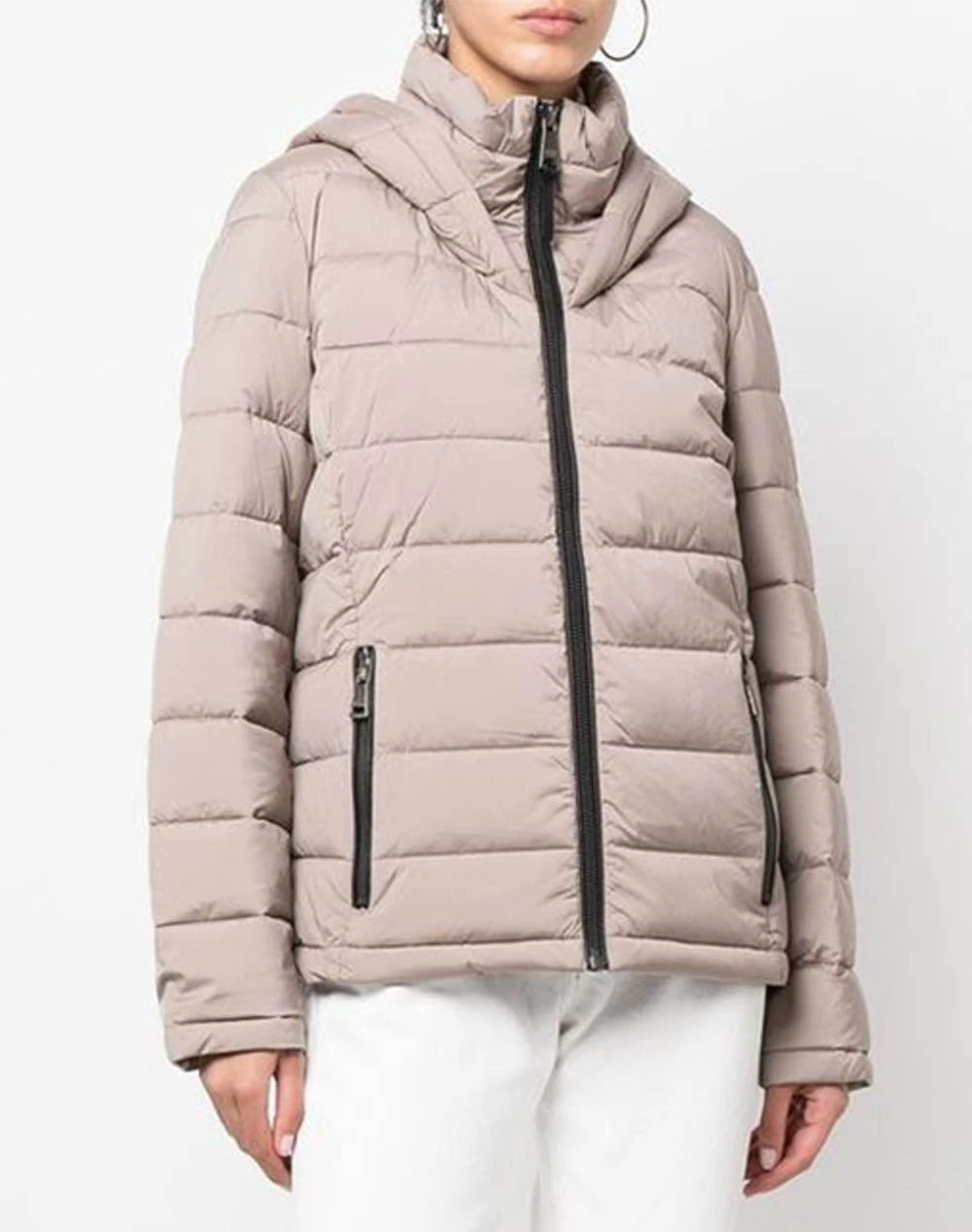 Γυναικείο μπουφάν σε κανονική γραμμή, με τσέπες στο πλάι, κλείσιμο με φερμουάρ και κουκούλα με γούνα. ( Σύνθεση:92% Πολυαμίδιο, 8% Ελαστάνη )