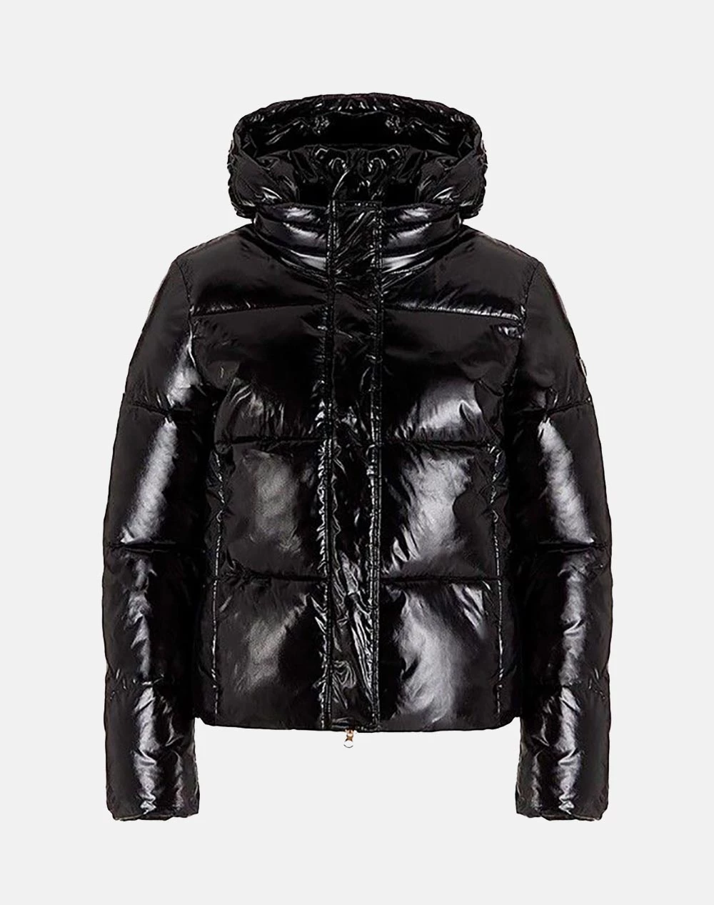 Μπουφάν μονόχρωμο γυναικείο με κουκούλα. Σε στυλ Cropped, με δύο τσέπες στο πλάϊ και patch με το λογότυπο της εταιρείας στο μανίκι. (Σύνθεση: 100% Πολυαμίδιο)