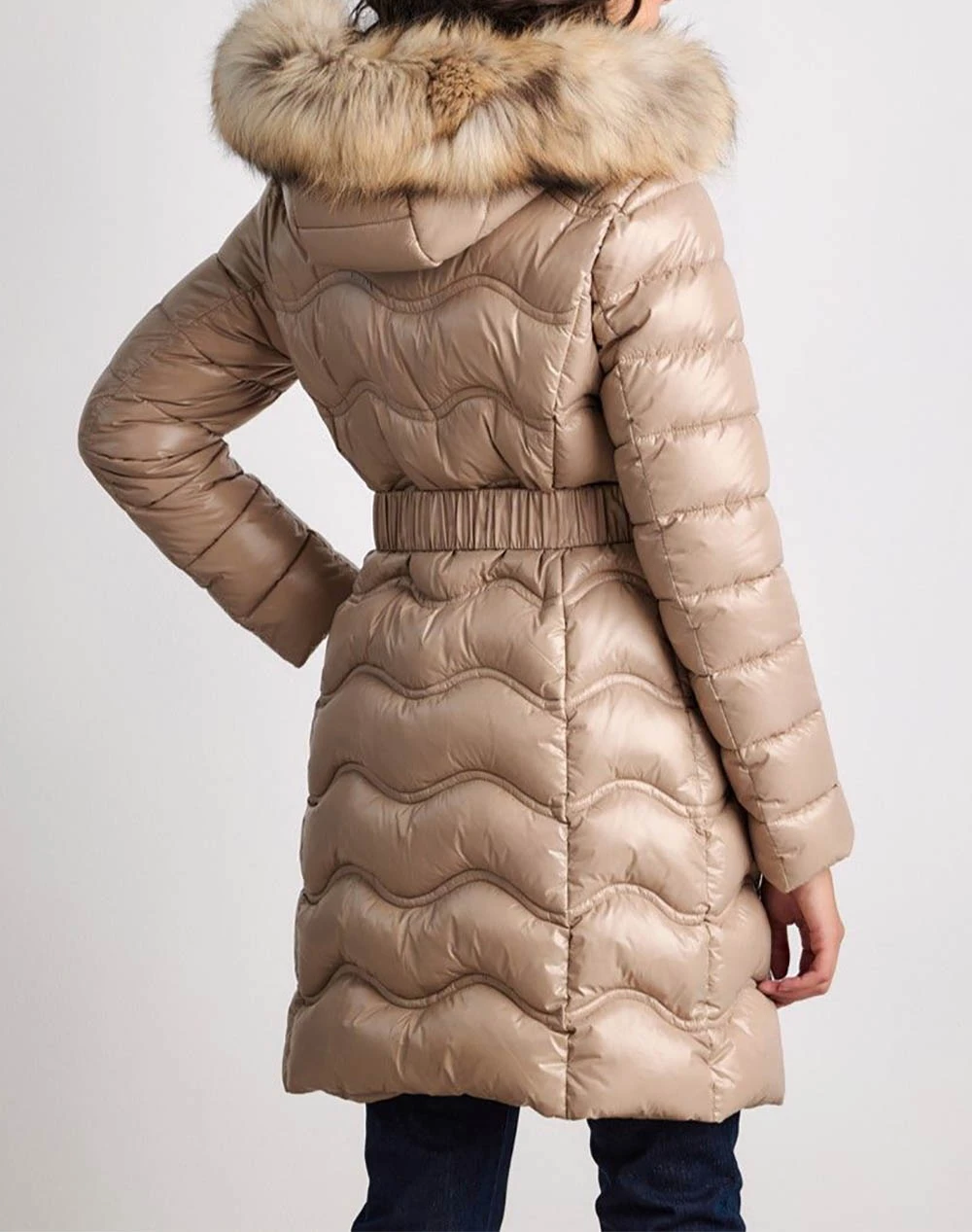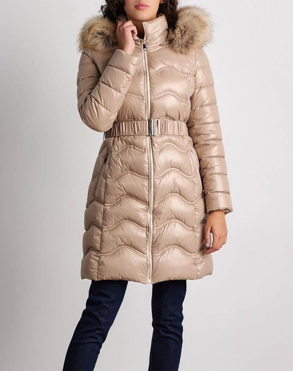 Γυναικείο μπουφάν σε κανονική γραμμή, με τσέπες στο πλάι, κλείσιμο με φερμουάρ και κουκούλα με γούνα. ( Σύνθεση: Συνθετικό )
