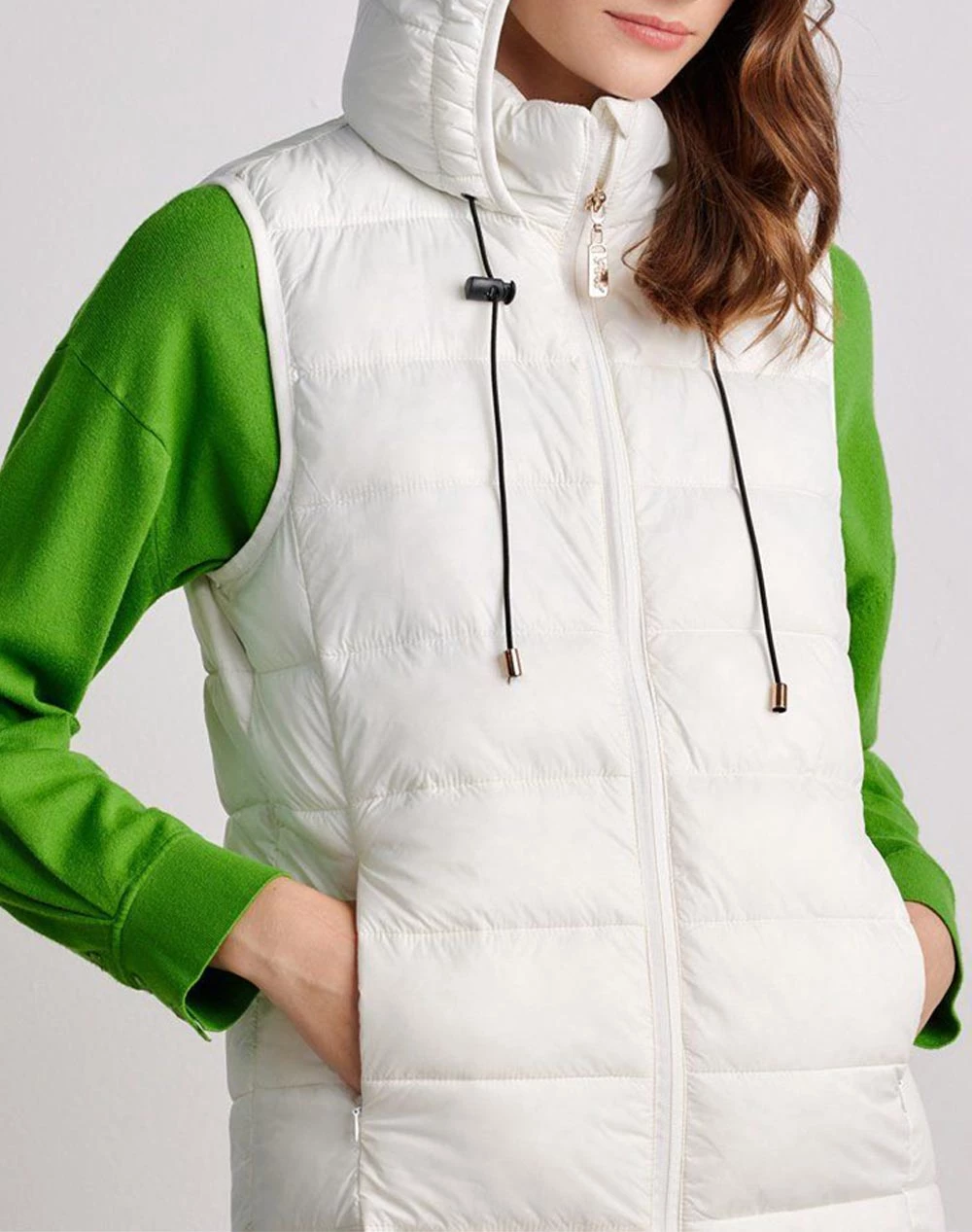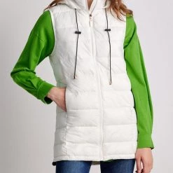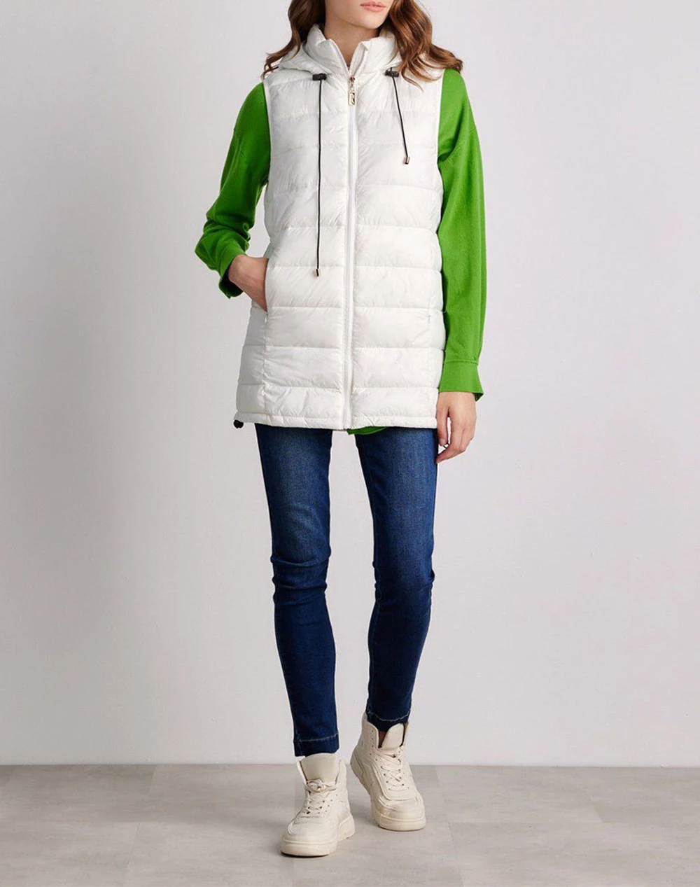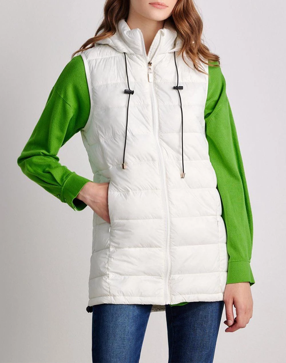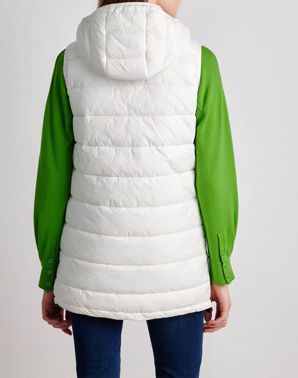 Γυναικείο μπουφάν μακρύ,αμάνικο, με κουκούλα, κλέισιμο με φερμουάρ και κρυφές κάθετες τσέπες. ( Σύνθεση: 100% Πολυαμίδιο )