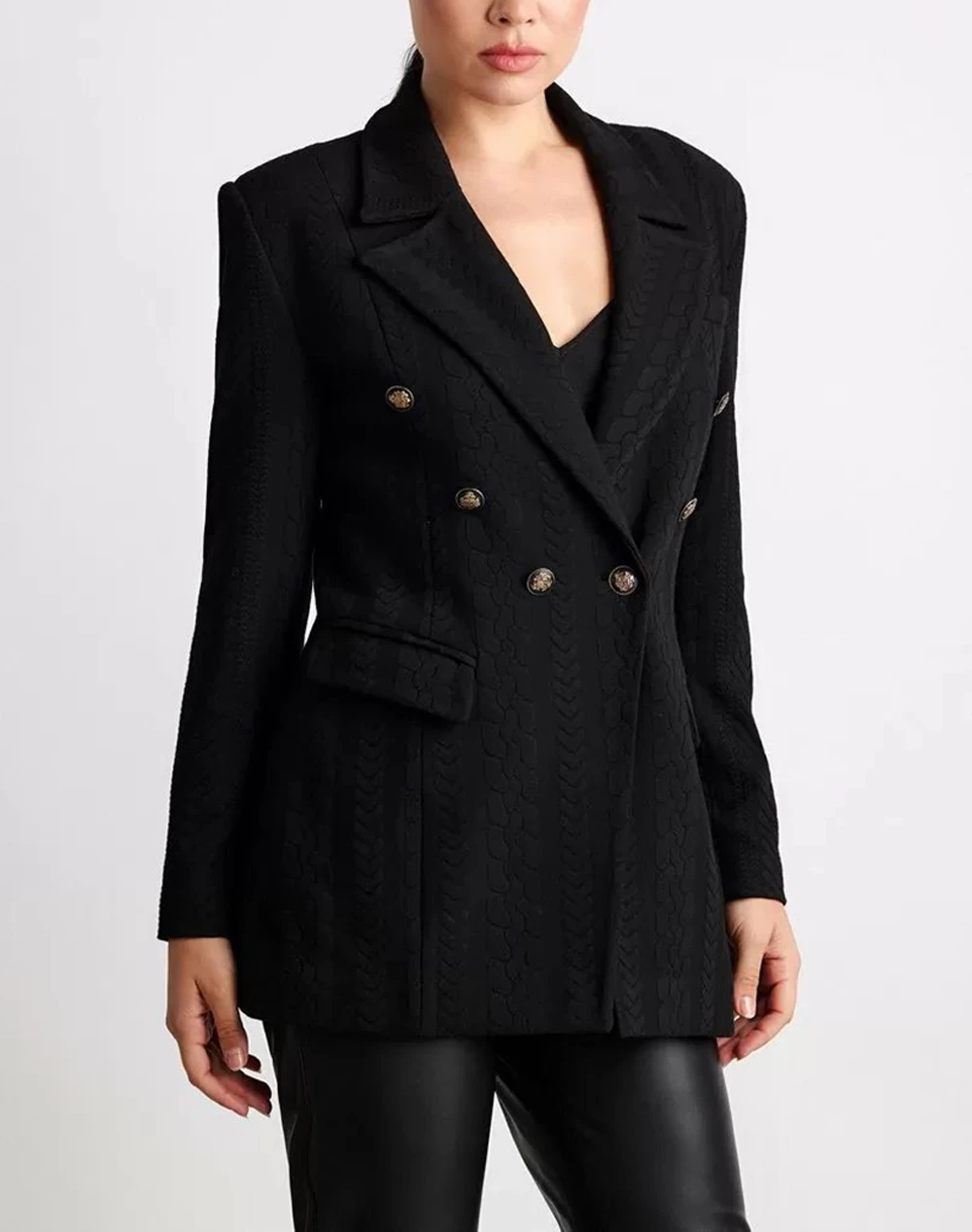 Σακάκι μονόχρωμο σταυρωτό, με ανάγλυφο σχέδιο και διακοσμητικά κουμπιά μπροστά. (Σύνθεση: 62% Πολυεστέρας, 34% Βισκόζη, 4% Ελαστάνη)