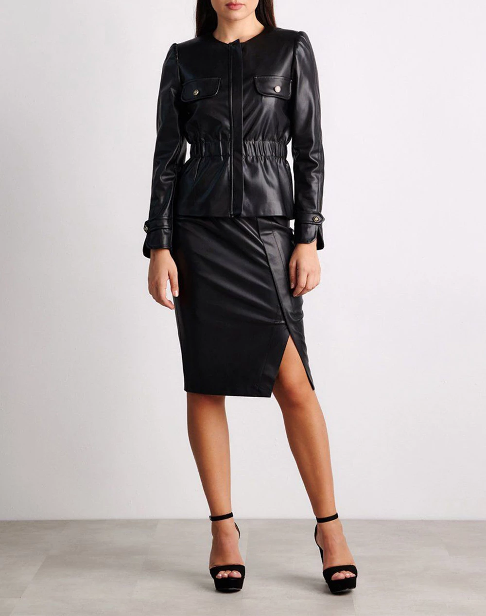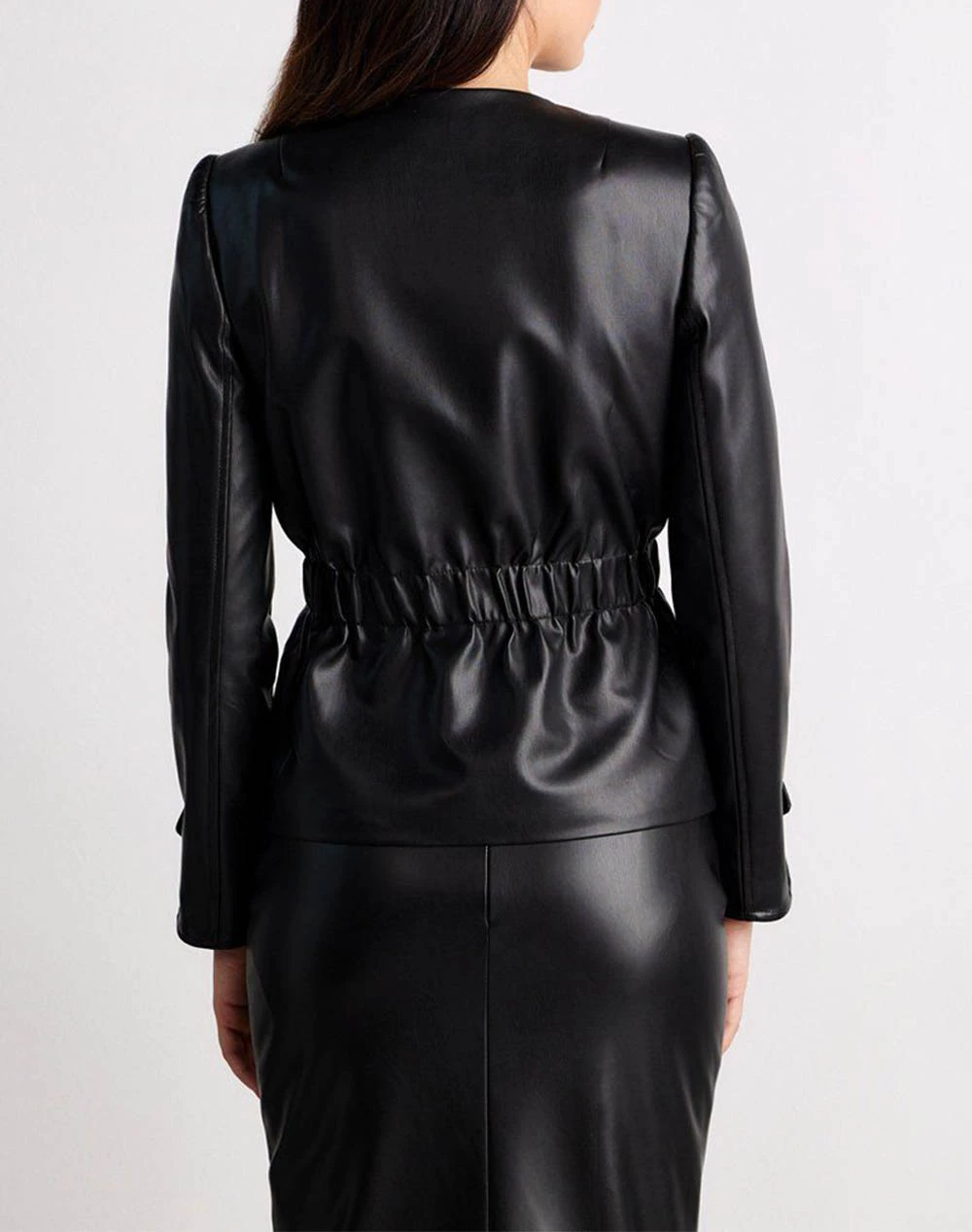 Δερμάτινο μπουφάν με λάστιχο στη μέση και εξωτερικά πατάκια για τσέπες. ( Σύνθεση: 100% Πολυεστέρας )