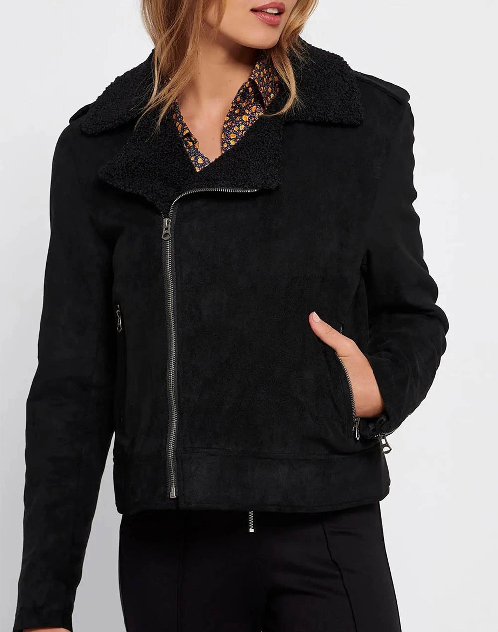 Biker μπουφάν σε όψη suede (100% ΠΟΛΥΕΣΤΕΡΑΣ)