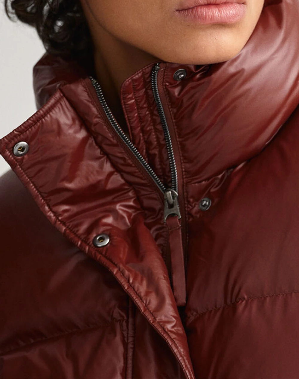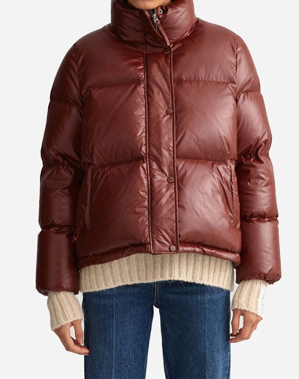 Γυναικείο puffer μπουφάν από συνθετικό υλικό με ψηλό λαιμό, πλαινές τσέπες και κλείσιμο με φερμουάρ και κουμπιά. ( Σύνθεση: 100% Πολυαμίδιο. )