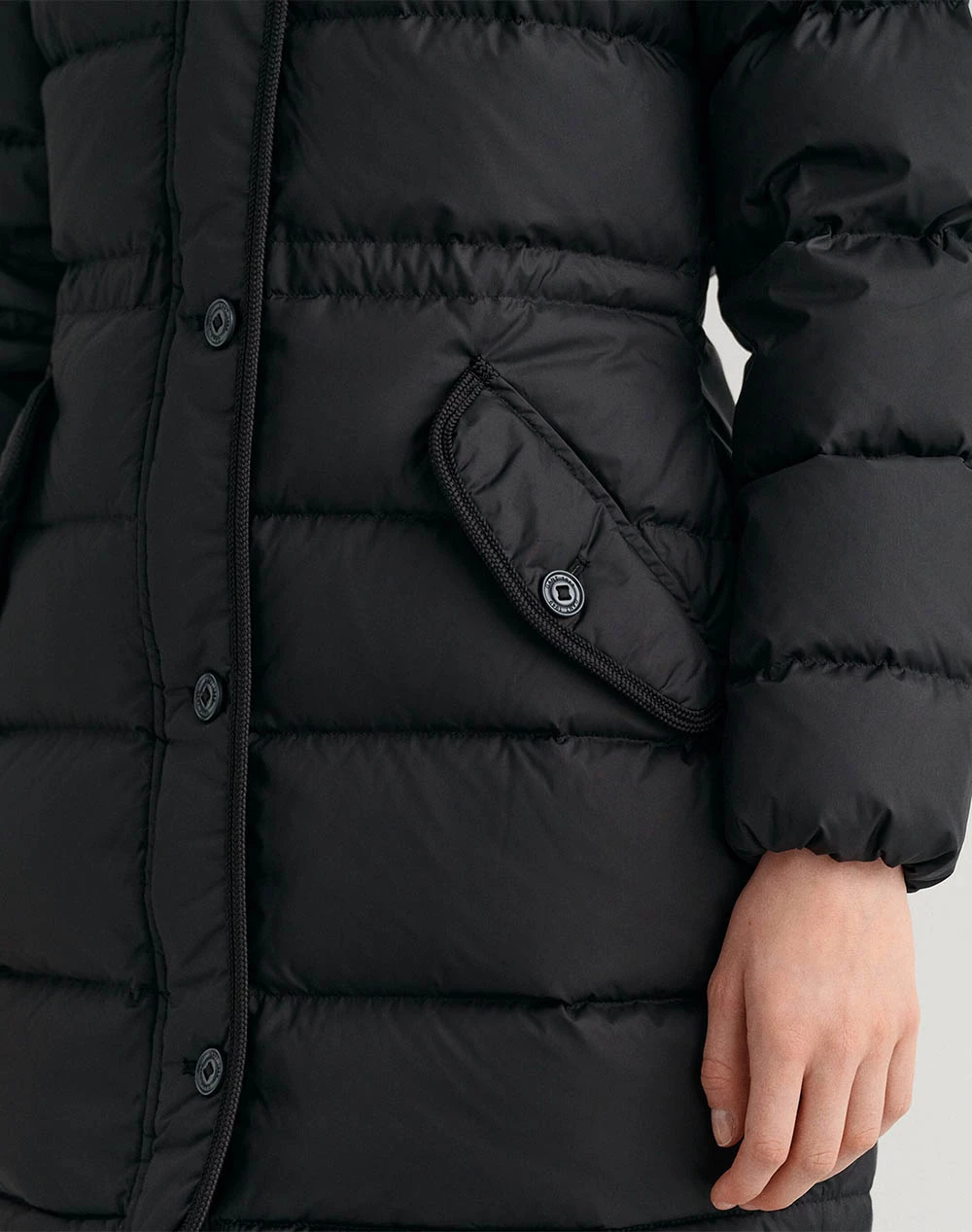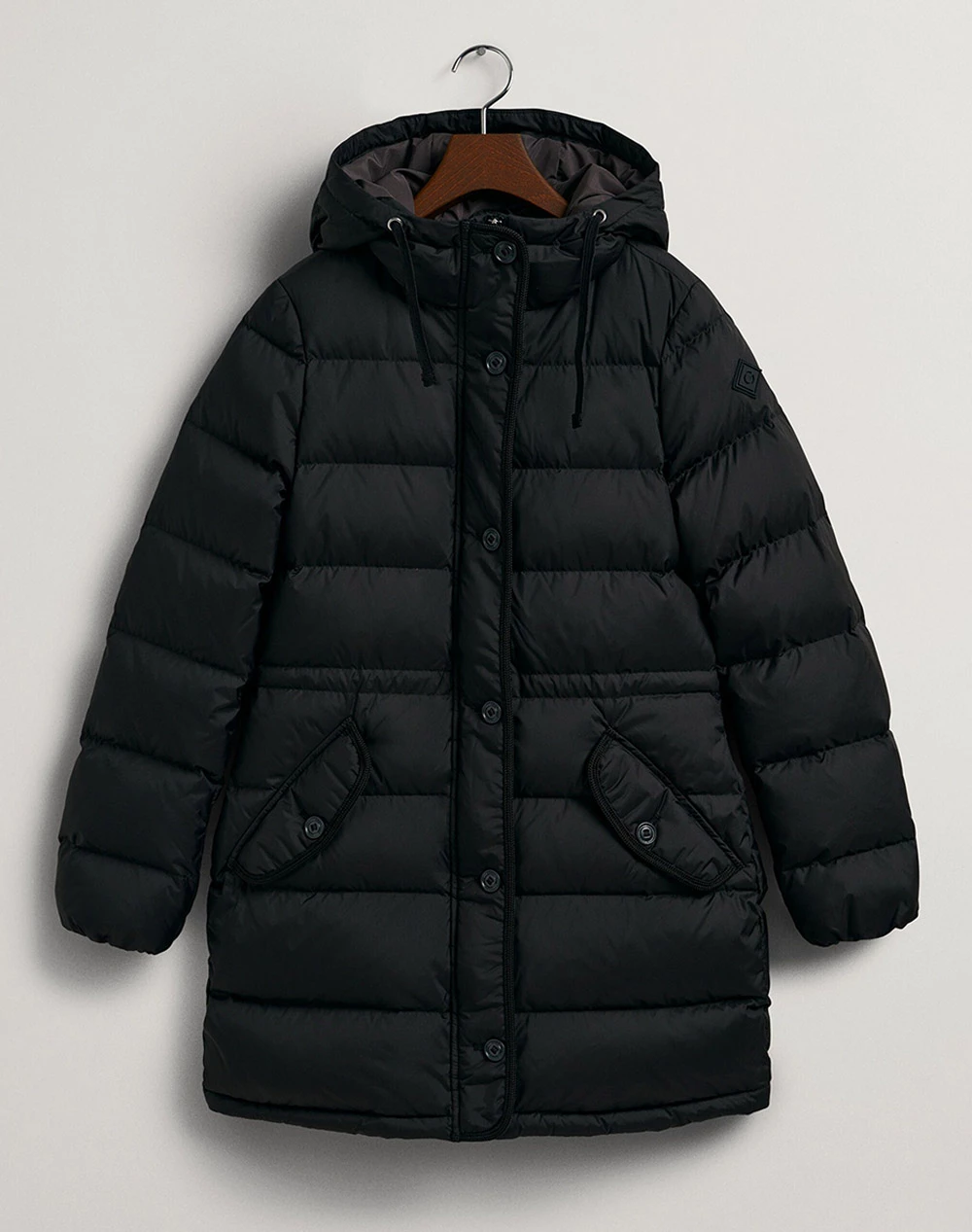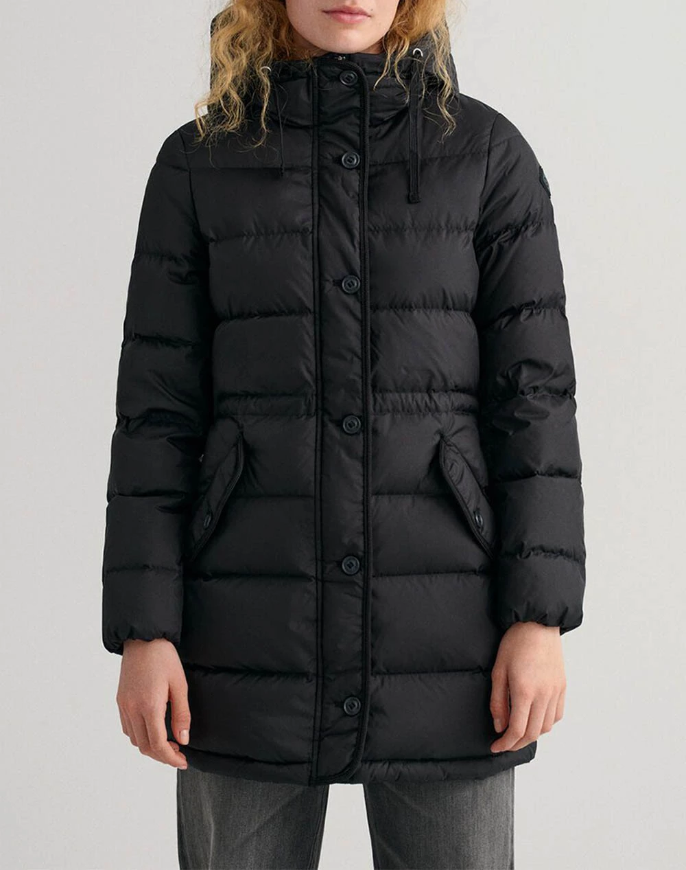Γυναικείο μακρύ μπουφάν τύπου puffer σε κανονική γραμμή, με ρυθμιζόμενη κουκούλα, κλείσιμο με φερμουάρ και κουμπιά και τσέπες στο πλάι. ( Σύνθεση: 100% Πολυεστέρας )