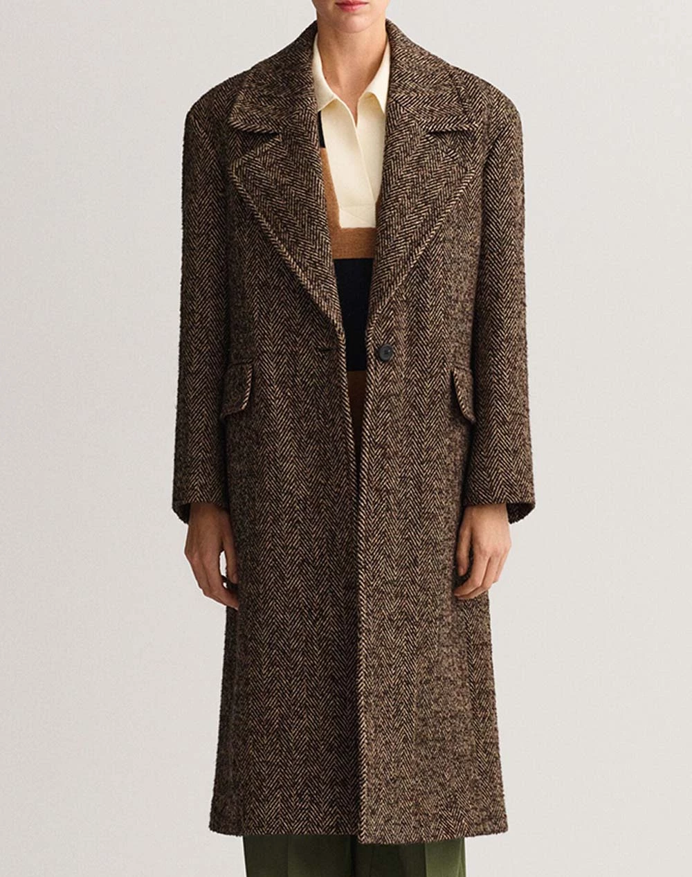 Γυναικείο μακρύ παλτό σε κανονική γραμμή, με τσέπες στο πλάι. ( Σύνθεση: 51% Μαλλί, 31% Πολυαμίδιο, 5% Πολυεστέρας, 5% Βισκόζη )