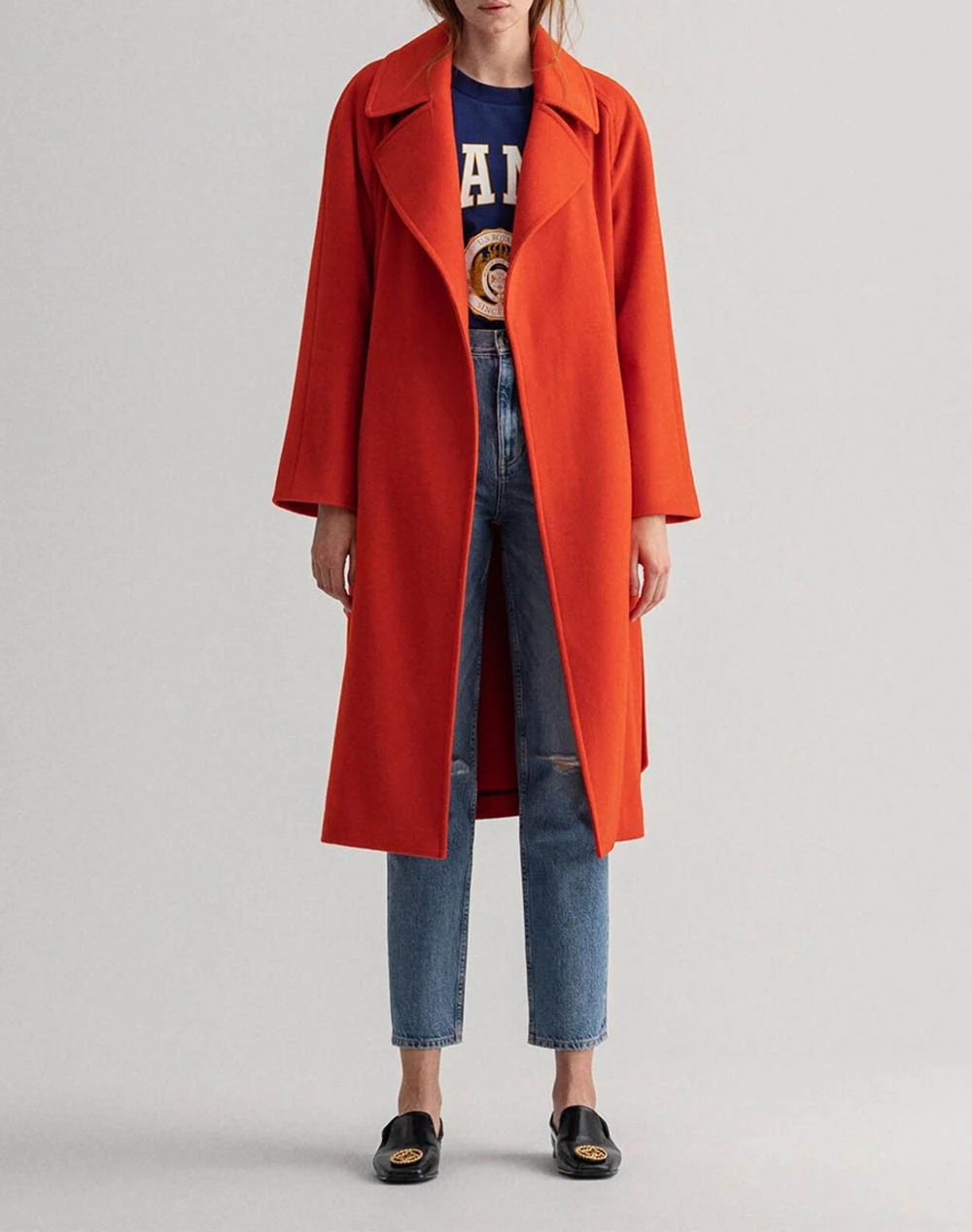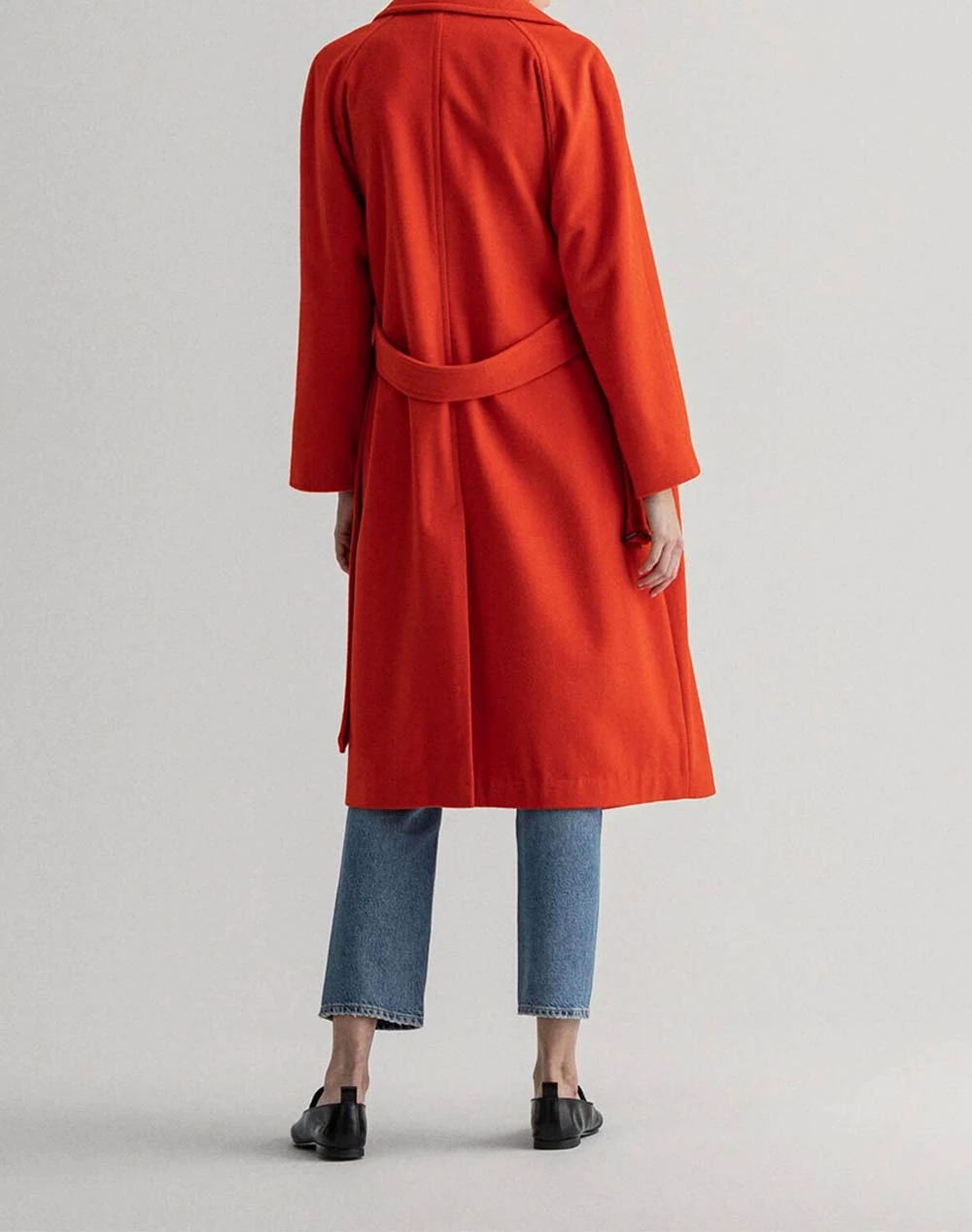 Γυναικείο παλτό σε κανονική γραμμή, με μεγάλο γιακά με πέτο και ρυθμιζόμενη ζώνη στη μέση. ( Σύνθεση: 70% Μαλλί, 30% Πολυαμίδιο )