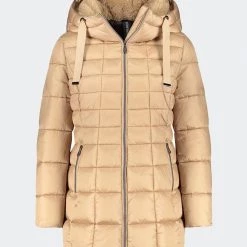 Γυναικείο μακρύ μπουφάν καπιτονέ με γούνινη επένδυση, κουκούλα και κλείσιμο με φερμουάρ. (Σύνθεση: 100% Πολυεστέρας)
