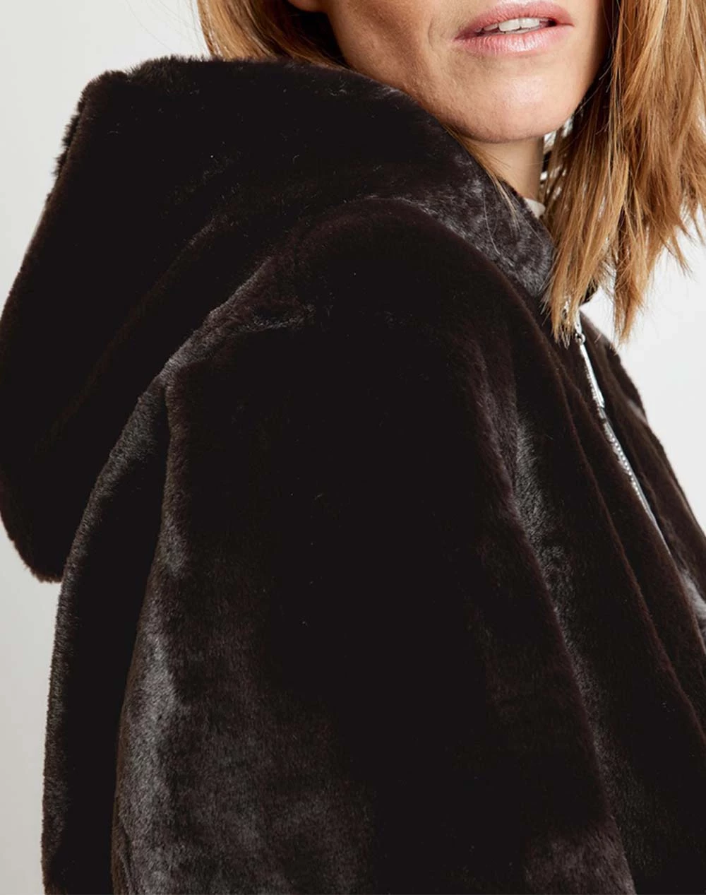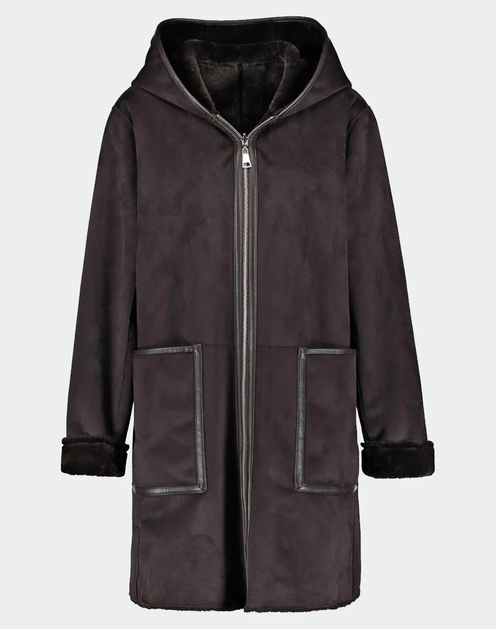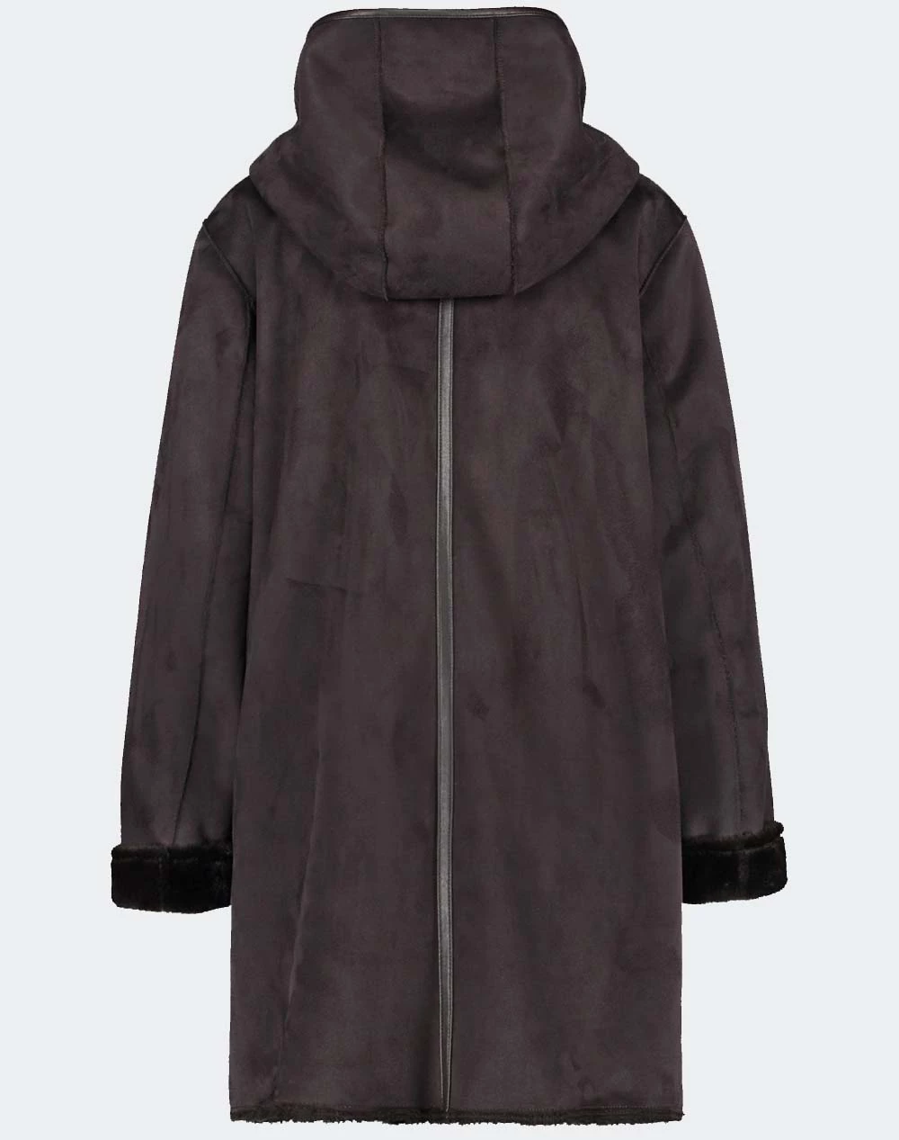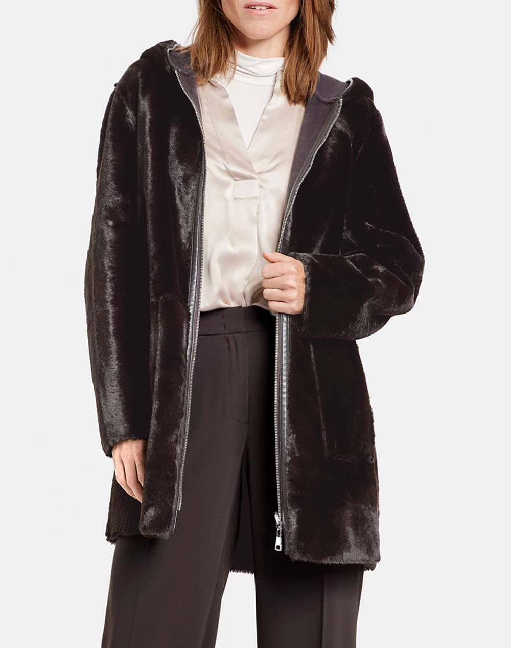Γυναικείο μακρύ μπουφάν τύπου παρκά, διπλής όψεος με κουκούλα και γούνινη επένδυση. Κλείσιμο με φερμουάρ. (Σύνθεση: 100% Πολυεστέρας)