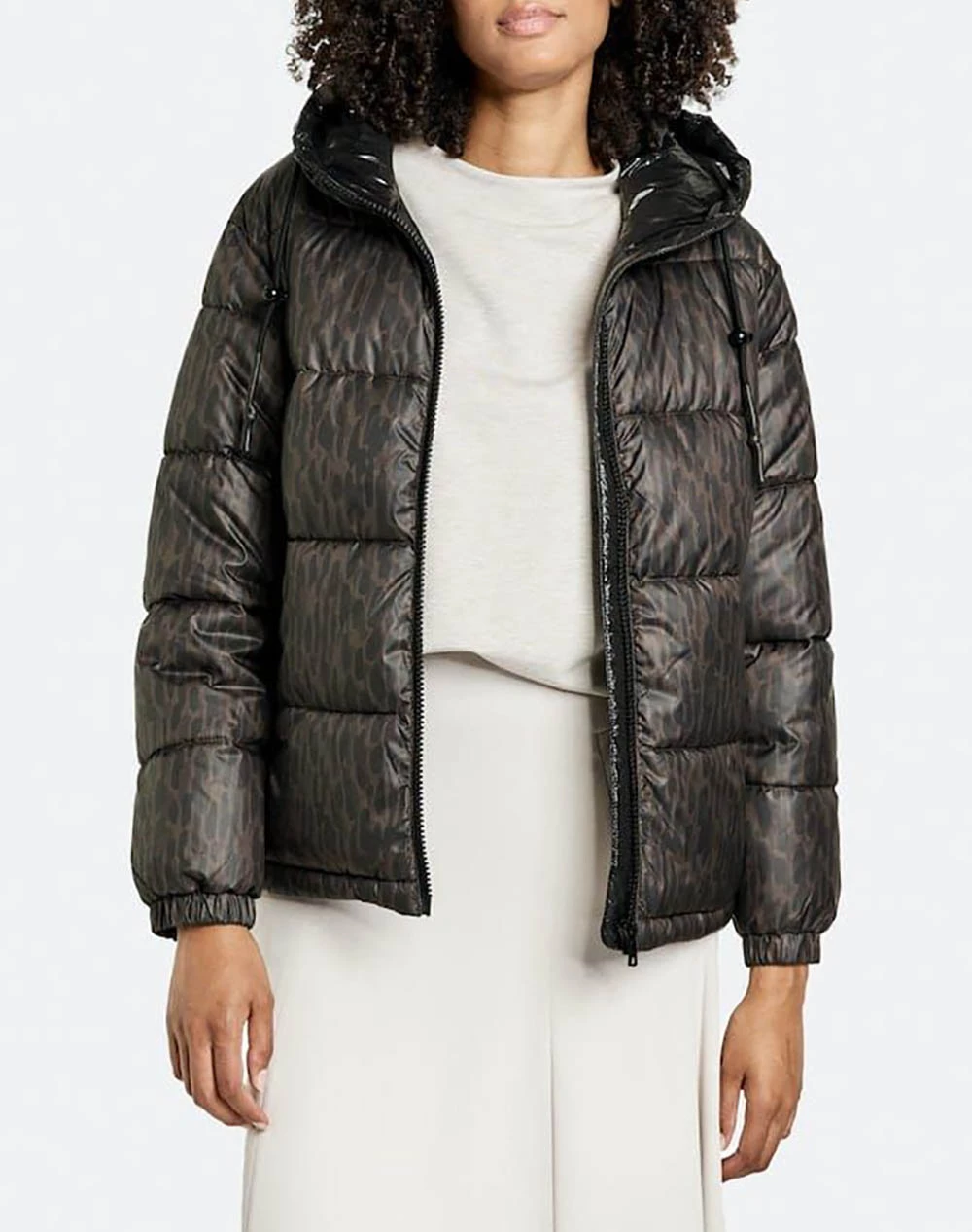 Γυναικείο μπουφάν τύπου puffer καπιτονέ σε κανονική γραμμή, με κουκούλα, τσέπες στο πλάι και κλείσιμο με φερμουάρ. ( Σύνθεση: 100% Πολυεστέρας )