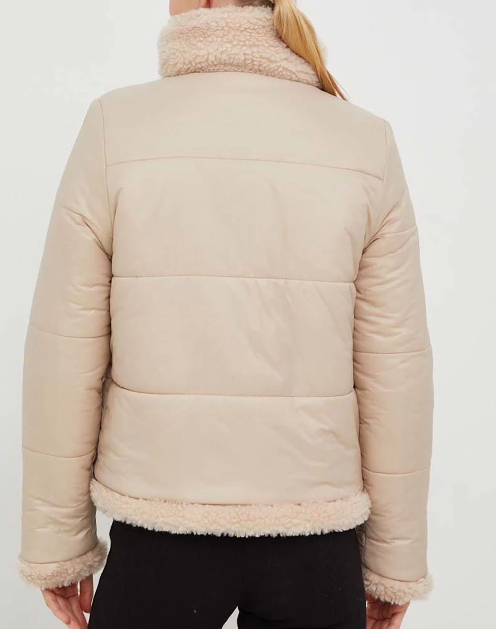 Γυναικείο μπουφάν τύπου puffer διπλής όψεως, με κλείσιμο με φερμουάρ. και ψηλό λαιμό. ( Σύνθεση: 100% Πολυεστέρας )