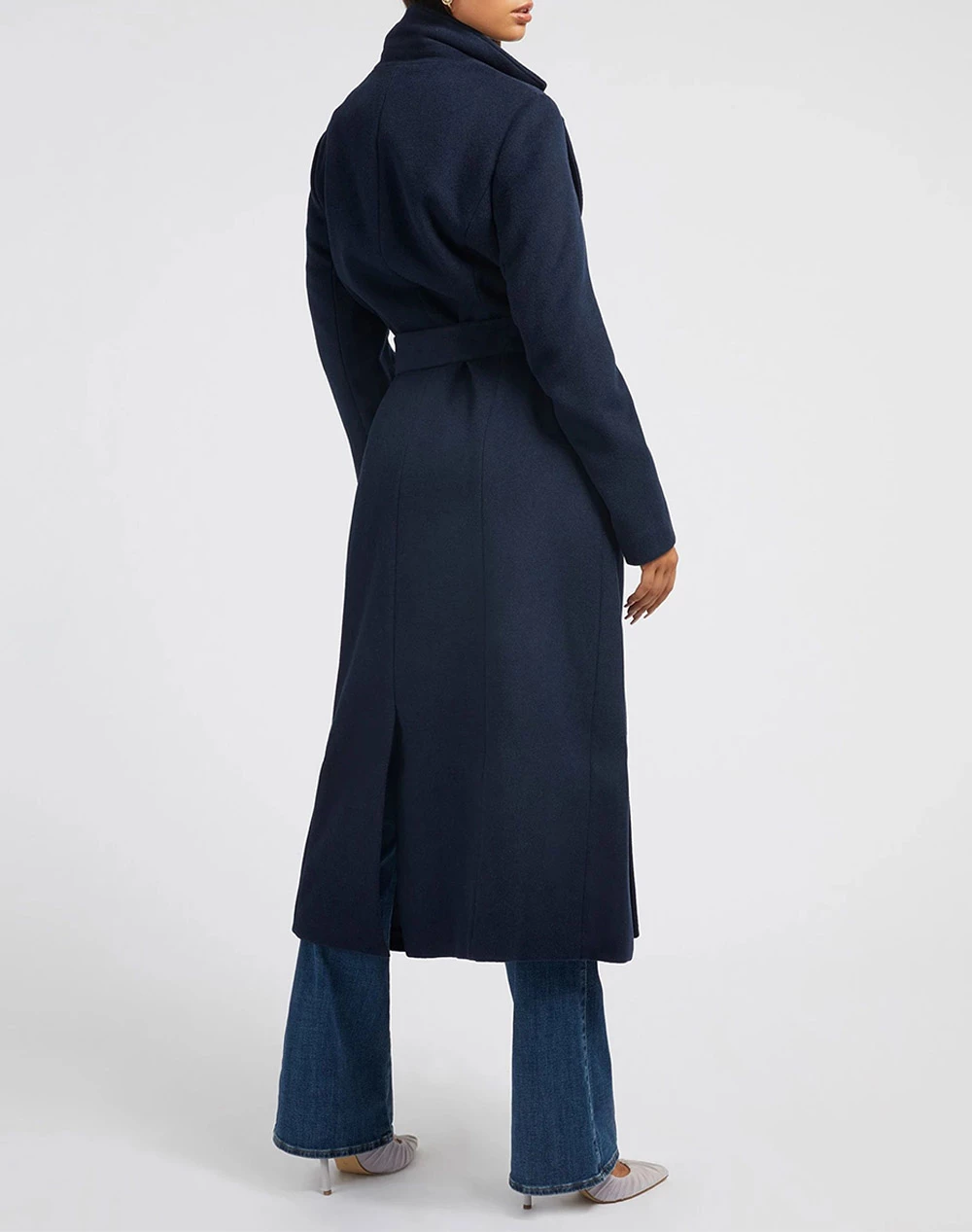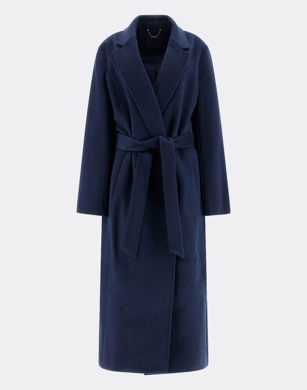 Γυναικείο μακρύ παλτό, σε κανονική γραμμή, με κλείσιμο μπροστά με ζώνη. ( Σύνθεση: 52% Μαλλί, 44% Πολυεστέρας, 2% Ακρυλικό, 2% Πολυαμίδιο )