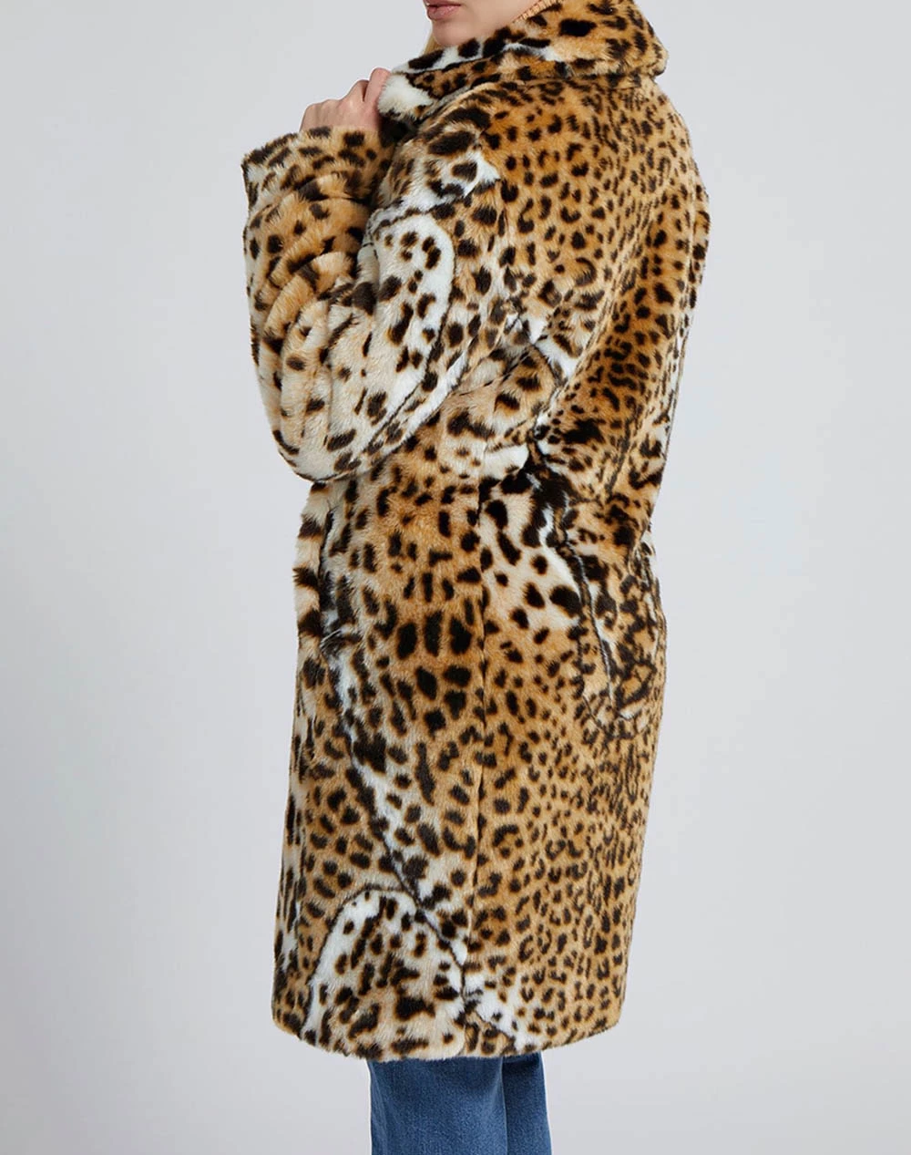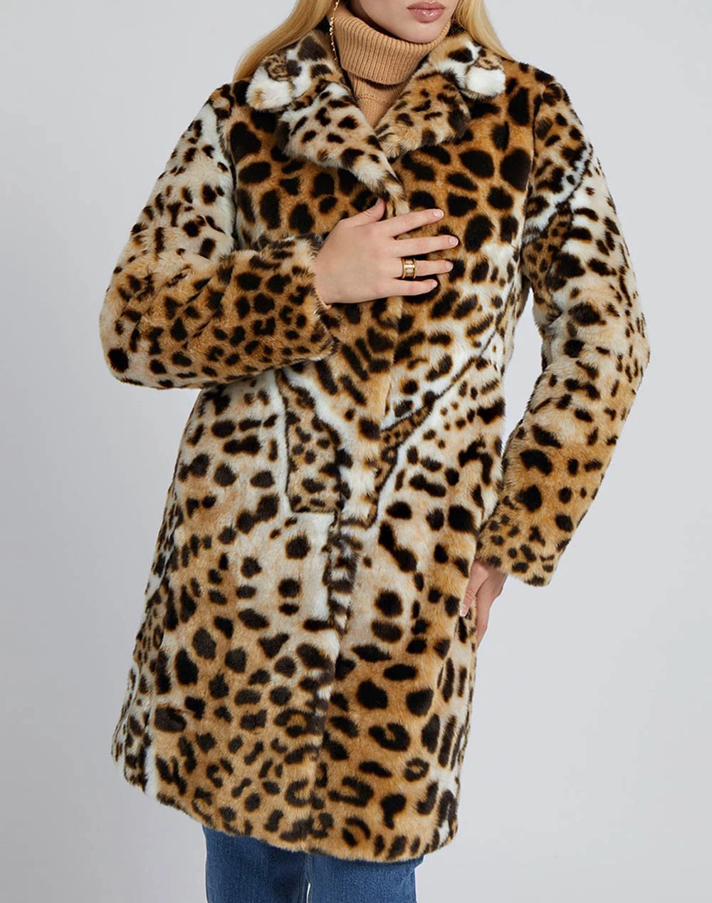 Παλτό με animal print σχέδιο από οικολογική γούνα, με κλασσικό γιακά με πέτο και κλείσιμο με κουμπιά. (Σύνθεση: 50% Ακρυλικό, 30% Μονταλ, 20% Πολυεστέρας)